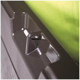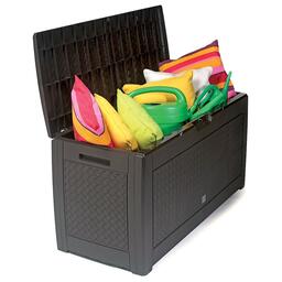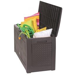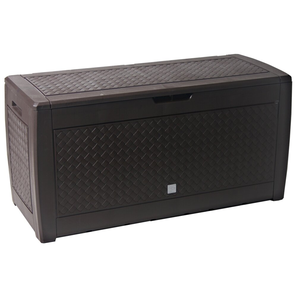 Ящик Prosperplast Boxe Matuba очень практичен и удобен для хранения различных предметов и садового инвентаря. С его помощью можно освободить пространство от всевозможных вещей. Данная модель изготовлена их пластика с имитацией под натуральный ротанг, дерево и бамбук. Помимо хранения ящик Prosperplast Boxe Matuba может выполнять функцию столика. Дополнительными преимуществами являются легкая сборка, а также наличие ручек для переноски с двух сторон и возможность прикрепления навесного замка. • Размер: 119х48х60 см • Объем: 310 л • Материал: пластик • Колеса • Цвет: венге • Размер коробки: 119х8,5х58 см • Вес брутто: 6,61 кг • Производитель: Prosperplast • Страна: Польша
