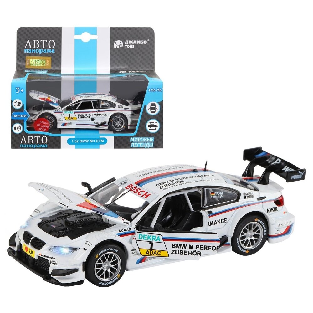 Машинка металлическая ТМ "Автопанорама", 1:32 BMW M3 DTM, белый, инерция, свет, звук, открывающиеся двери