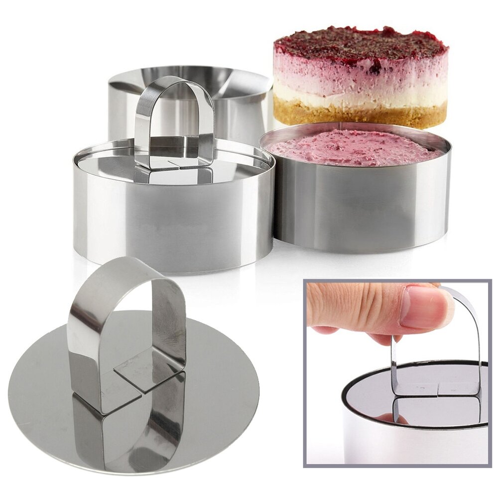 Форма для печенья и муссовых десертов круг, из нержавеющей стали, с крышкой-прессом, стальной, 8х4х8 см, Kitchen Angel KA-FORM-22