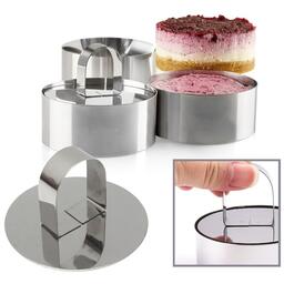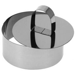 Форма для печенья и муссовых десертов Круг используется для оформления блюд. Форма поможет сервировать закуски и десерты, а также пригодится для порционного тушения, сборки бутербродов, а также с ее помощью можно вырезать идеально ровные фигуры из теста и даже пожарить аккуратный омлет или глазунью. Форма имеет крышку-пресс, которая свободно входит в форму. Такая крышка применяется при выталкивании формованного порционного блюда на сервировочные тарелки. Изготовлено из коррозионностойкой нержавеющей стали. После применения рекомендуется промыть губкой с использованием жидких моющих средств. Хранить в сухом помещении.