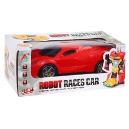 Машинка спортивная на батарейках превращается в робота При включении игрушка осуществляет произвольные движения и воспроизводит реалистичные звуки, а так же трансформируется в робота Играя таким образом, ребенок развивает координацию движений и мелкую моторику пальцев рук. Батарейки: Рекомендуемый возраст:3+ Размер упаковки: 23*11*9,5