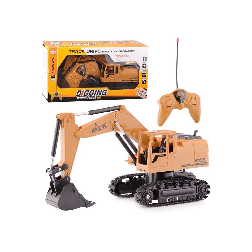 экскаватор радиоуправляемый, работает от аккумулятора 4.8V, пульт управления, работает от 2-х батареек типа АА (не вхоядт в комплект), аккумулятор Ni-Cd АА 700mAh 4.8V, USB-шнур для зарядки. Размеры экскаватора (ДхШхВ): 28х10.5х16 см движение вперёд и назад, разворот на 360 градусов вправо и влево, подсветка кабины экскаватора, движения стрелы и ковша, имитирующие работу настоящего экскаватора.