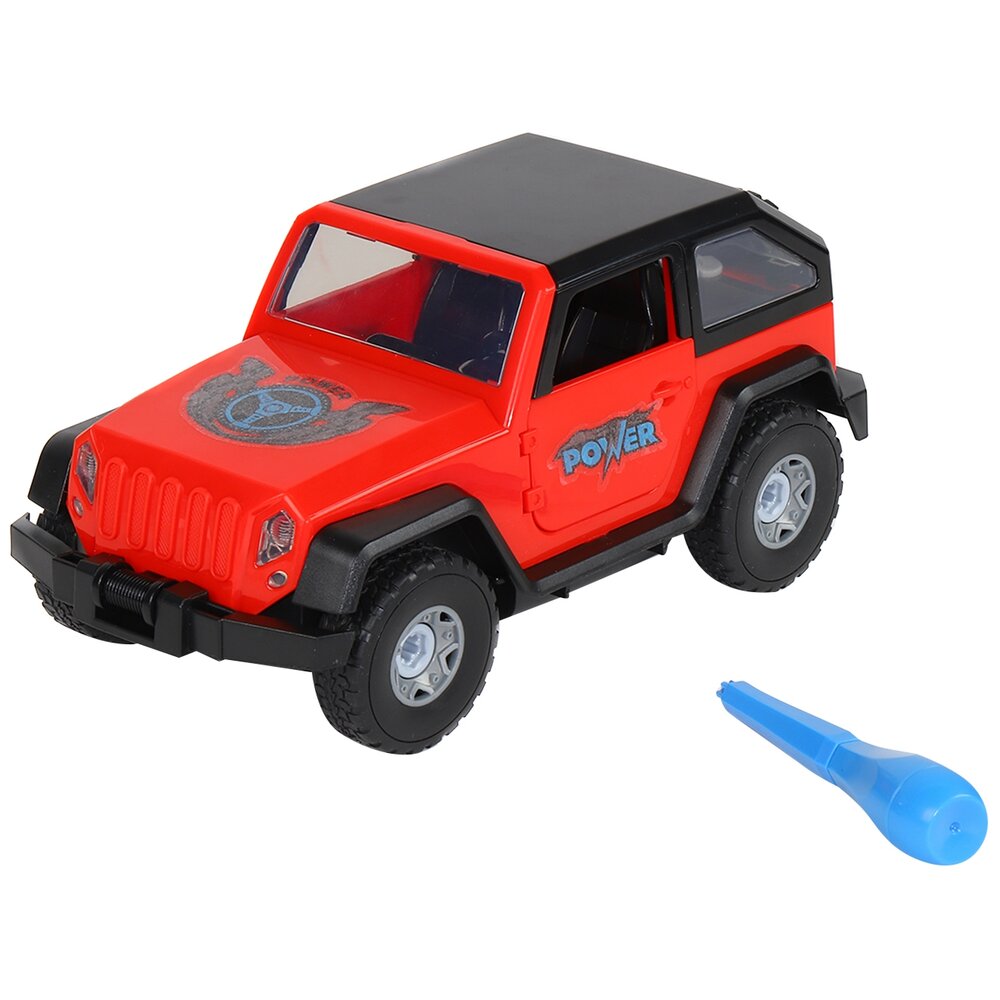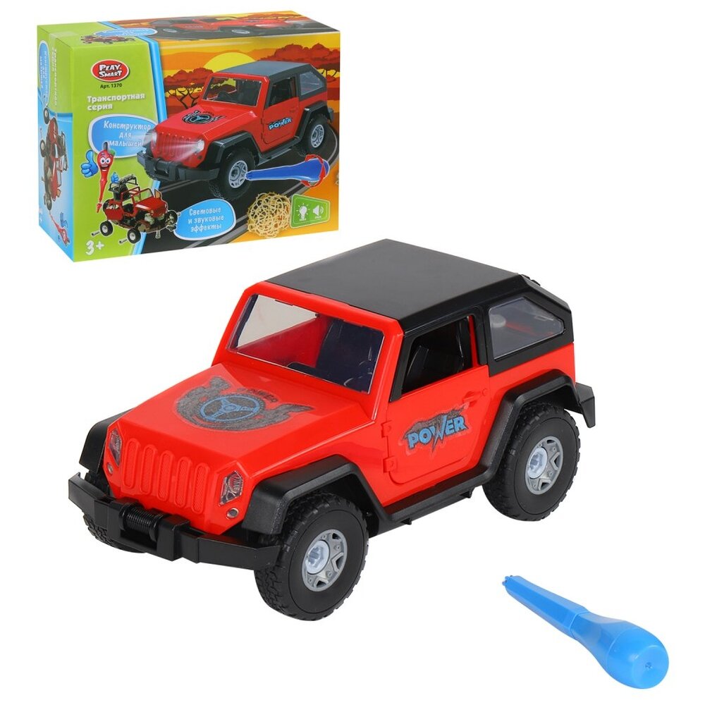 Машина-конструктор с отверткой станет отличным подарком для Вашего ребенка. Ребенок сможет с легкостью разобрать и собрать, ведь в комплекте есть специальная отвертка. Готовой машиной можно полноценно играть, придумывать с ней интересные приключения. Дети с удовольствием будут раскручивать и закручивать гайки, представляя себя настоящими мастерами машинного дела. В машинке предусмотрен инерционный механизм движения. Достаточно потянуть игрушку назад, а потом отпустить, и она сама поедет вперед. Машинка будет двигаться, пока не закончится инерция. Внедорожник обладает световыми и звуковыми эффектами, поэтому играть с ним будет очень интересно. Конструирование развивает логическое и образное мышление, наблюдательность и самостоятельность, а также моторику рук и ловкость пальцев. Батарейки:3*AG13/входят в набор Рекомендуемый возраст:3+ Размер упаковки:28*21*12 см