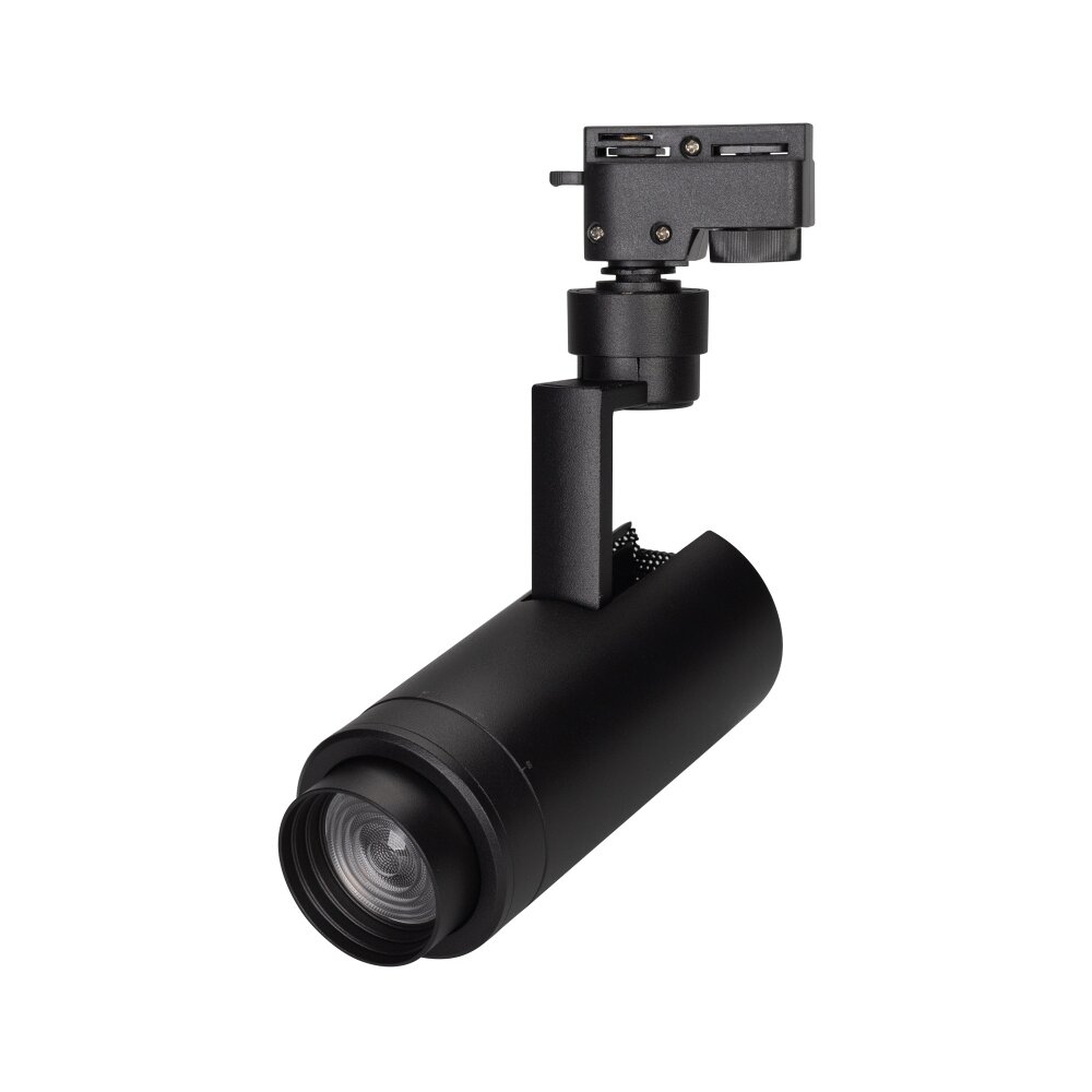 Светильник подвесной для треков/шин 2 провода, 10Вт. Цвет свечения БЕЛЫЙ 6000K, световой поток 800-1000лм, регулируемый угол 20-60°, CRI>90. Корпус круглый, металл, цвет черный. Размеры DxHxL Ø67x180x155мм. Входное напряжение AC220-240V, мощность 10Вт. Драйвер встроенный (27-38V, 260mA).