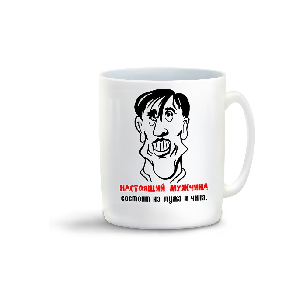 Кружка с приколом Настоящий мужчина состоит из мужа и чина.