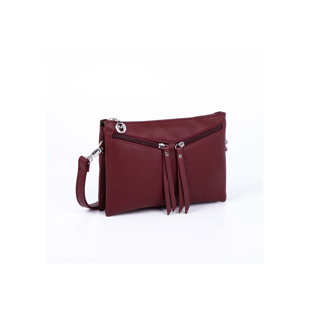 Сумка жен КЛА006, 24*3*17, 2 отд на молнии, н/карман, длин ремень, бордовый 6492930