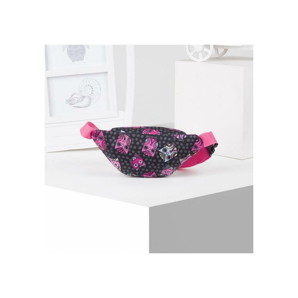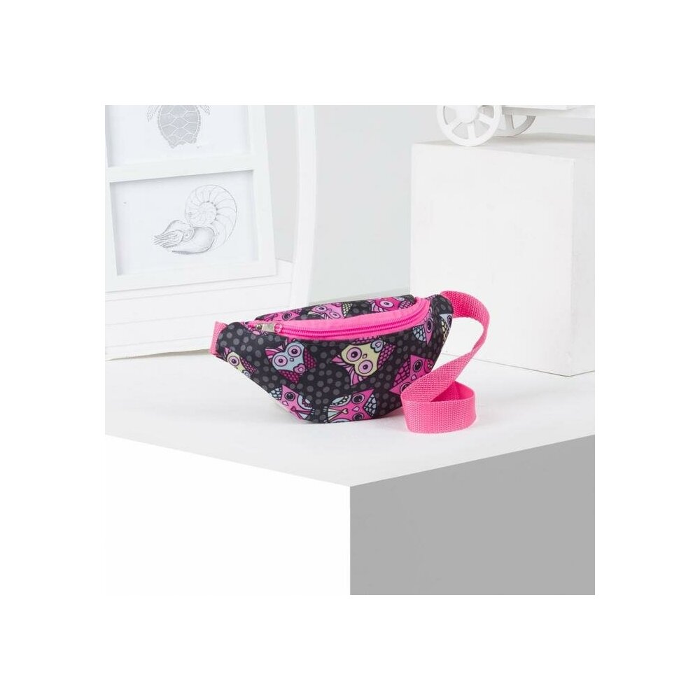 71051Д Сумка дет на пояс, 22*7*10, отдел на молнии, регул ремень, черный/розовые совы 5231942
