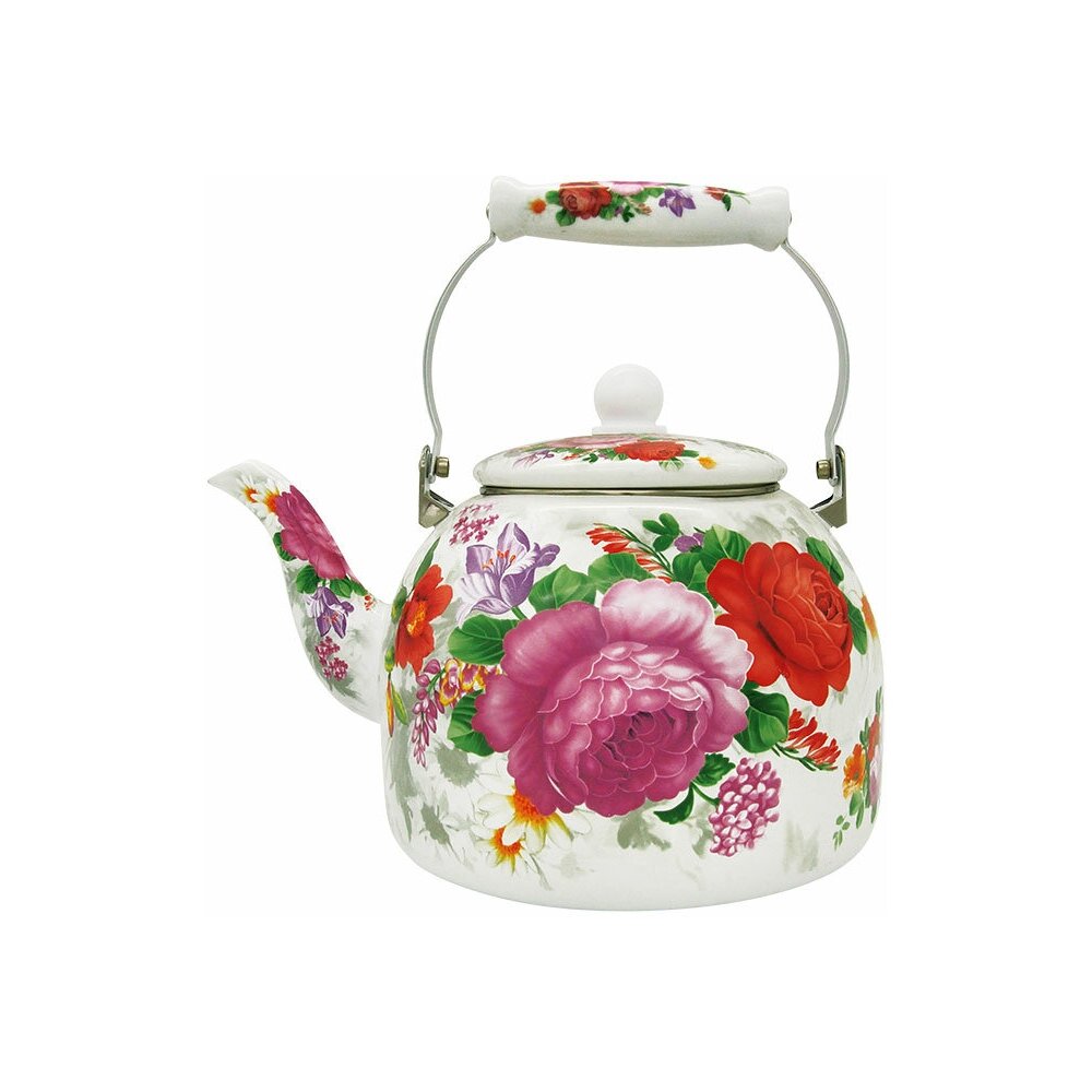 EM-501X1/48 Чайник эмалированный с керамической ручкой "Цветочный букет" 5,0л