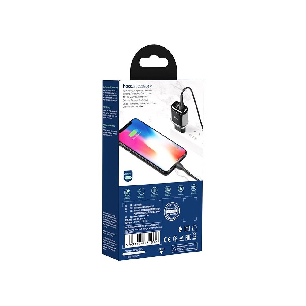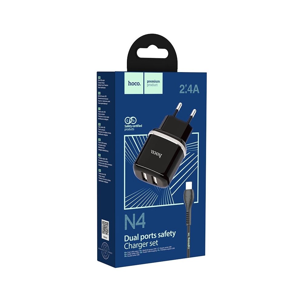 Сетевая зарядка Hoco N4 Aspiring + кабель Lightning, черный