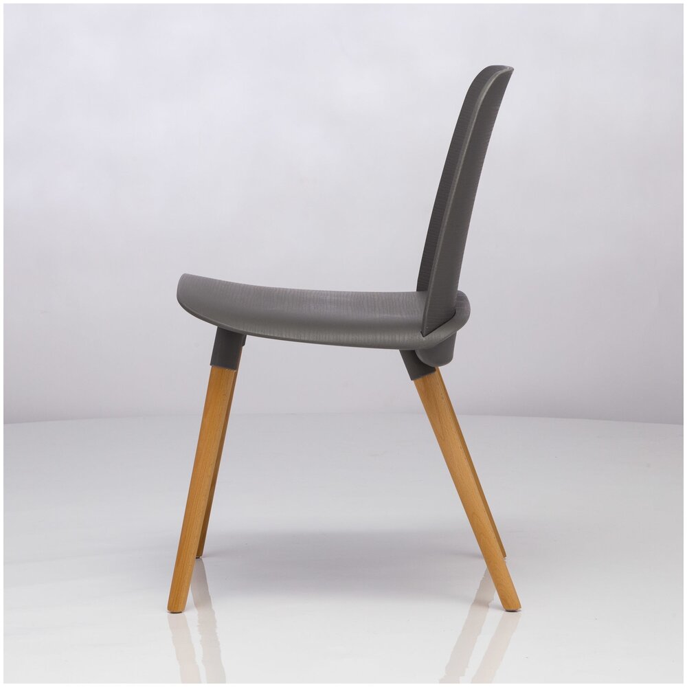 Сиденье и спинка стула выполнены из экологичного и прочного пластика - полипропилена и имеют выраженную текстуру, имитирующую дерево. Визуально и тактильно поверхность очень интересная и при этом практичная - царапины и потертости от интенсивного использования не будут заметны даже спустя годы. Каркас, соединяющий сиденье и ножки так же из монолитного полипропилена и имеет запас прочности на десятилетия. Ножки же выполнены из массива бука. Силиконовые наконечники для защиты напольного покрытия предотвращают скольжение и совсем незаметны. Стулья рекомендованы к использованию как в домашних условиях, так в общественных пространствах, ресторанах и кафе с большой посещаемостью, в том числе под открытым небом и в неблагоприятных условиях. Стулья коллекции Nerd производятся в разных цветах и комплектациях, даже с прозрачной спинкой и в виде полубарных стульев. Модель поставляется полностью в разобранном виде, но сборка не займет больше пяти минут. Все детали, инструмент и инструкция будет в коробке.