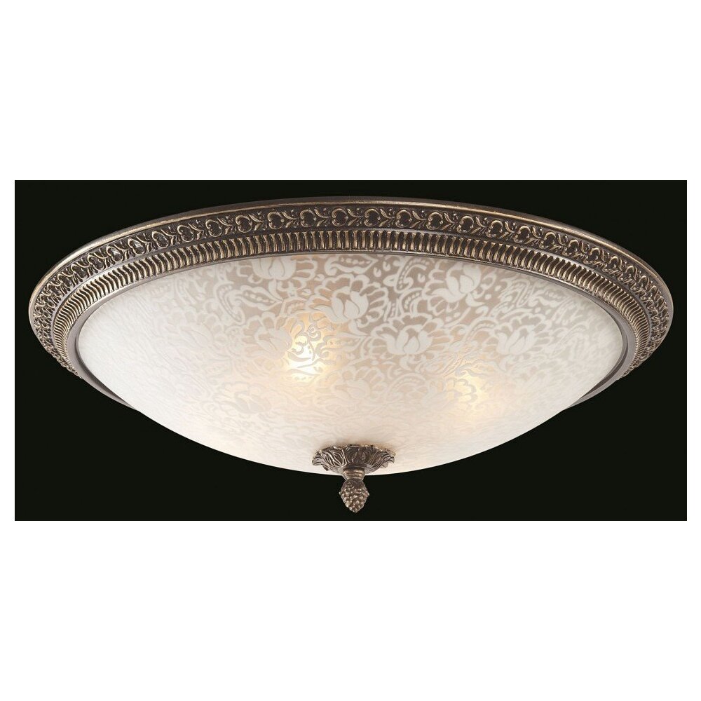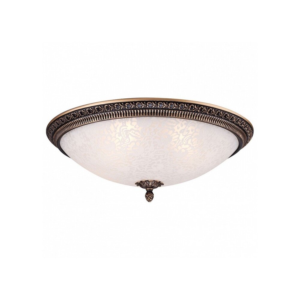 Накладной светильник стиля классика для гостиной, кабинета, прихожей или спальни имеет размеры 470x200 мм. Арматура светильника окрашена в бронзовый цвет. Лампы в комплекте - отсутствуют. В светильнике применяются лампы накаливания или светодиодная LED-лампа. Цвет плафонов - белый с неокрашенным рисунком, с матовой поверхностью. Материал плафонов - стекло. Класс электробезопасности - I, степень пылевлагозащиты (IP) - 20. Максимальная мощность лампы (Вт) - 40. Светильник размещается на потолоке.