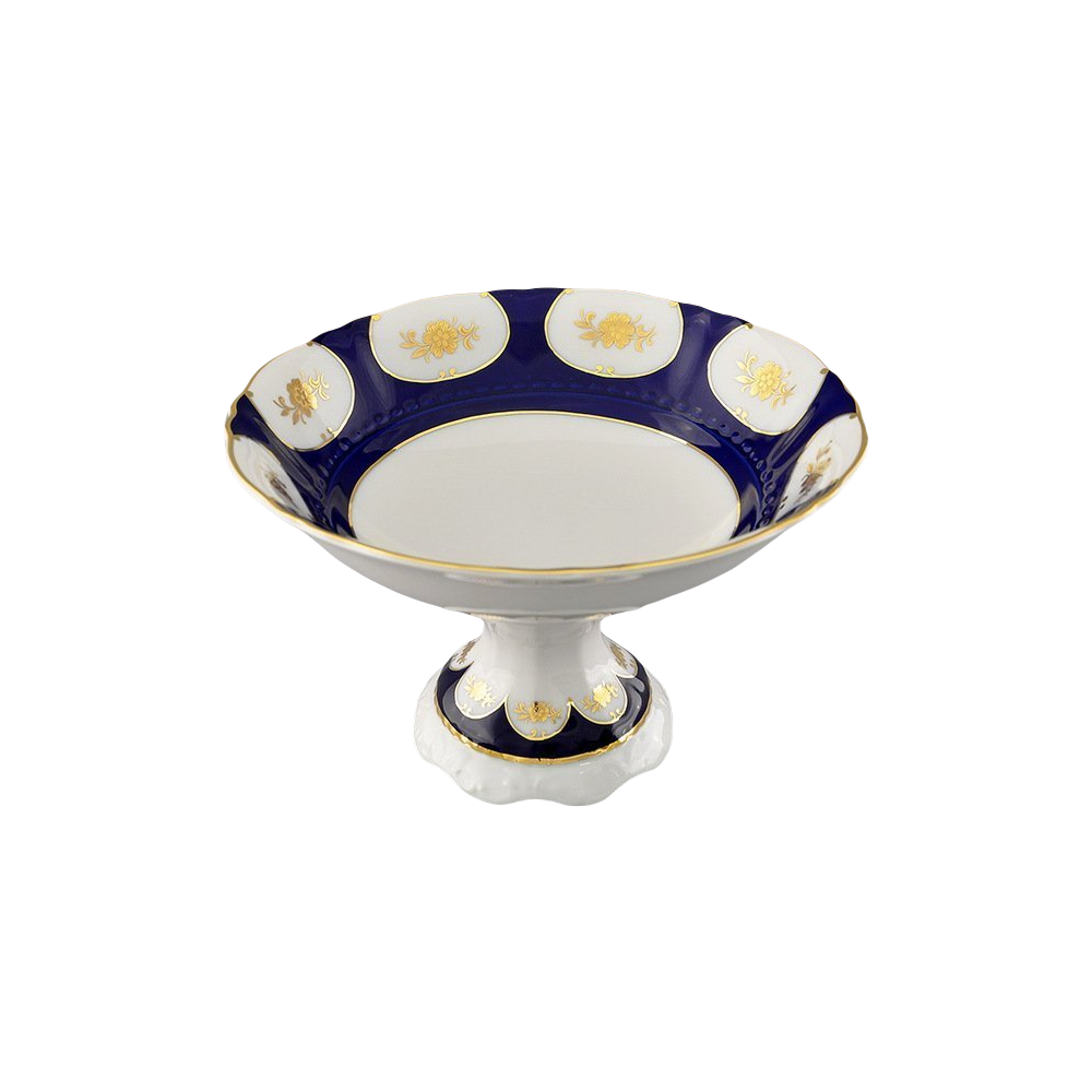 Ваза для фруктов Соната Темно-синий орнамент с золотом, 23 см, Leander