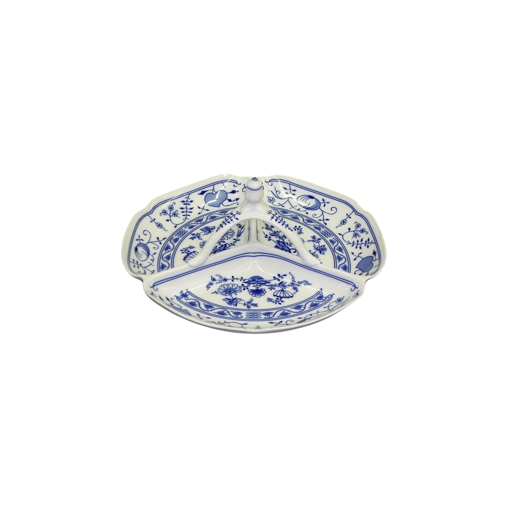 Изящная фарфоровая менажница на три секции прекрасно впишется в сервировку вашего стола. В этой красивой менажнице можно подавать различные закуски, соусы и сладости.