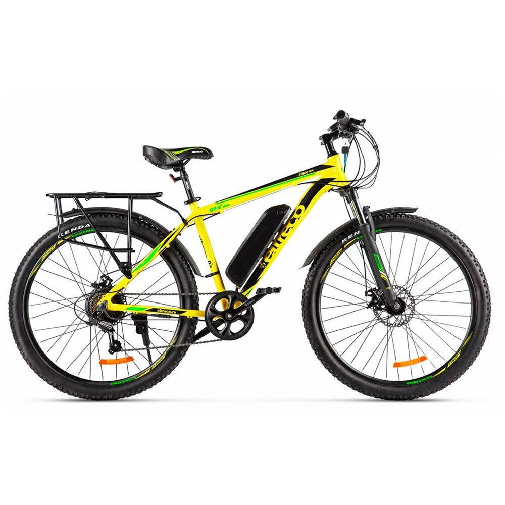 Велогибрид Eltreco XT 800 new – обновленная версия 2020 года. Электрический транспорт предназначен для передвижения по городу и загородным поселкам. Велогибрид получил обновленный дизайн и цветовую палитру. Мощность установленного на велосипеде электромотора Eltreco составляет 350 Вт. Электрический двигатель питает быстросъемный литий-ионный аккумулятор емкостью 10 Ач и напряжением 36 В. Электрический байк способен разгоняться до максимальной скорости 30-35 км/ч. Максимальная дистанция без дополнительной подзарядки батареи равняется 50 км. Контроллер находится в герметичном корпусе батареи для защиты от воздействия окружающей среды.
