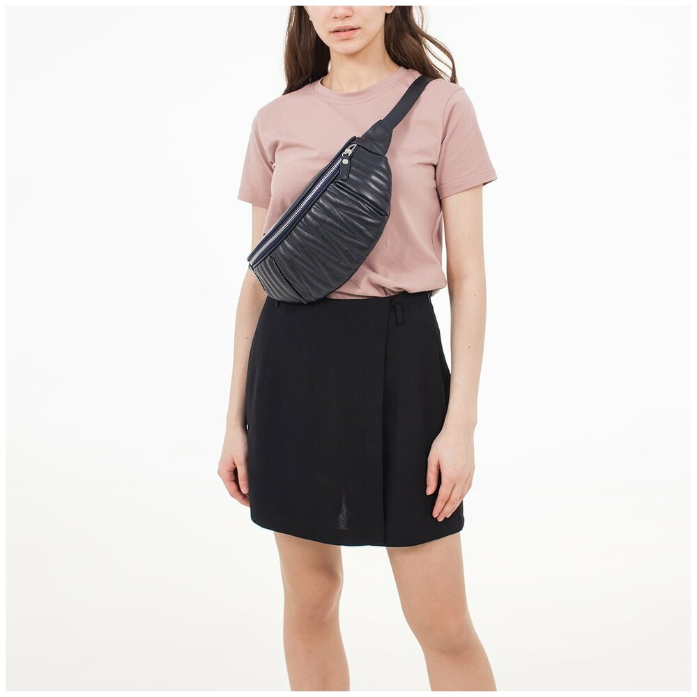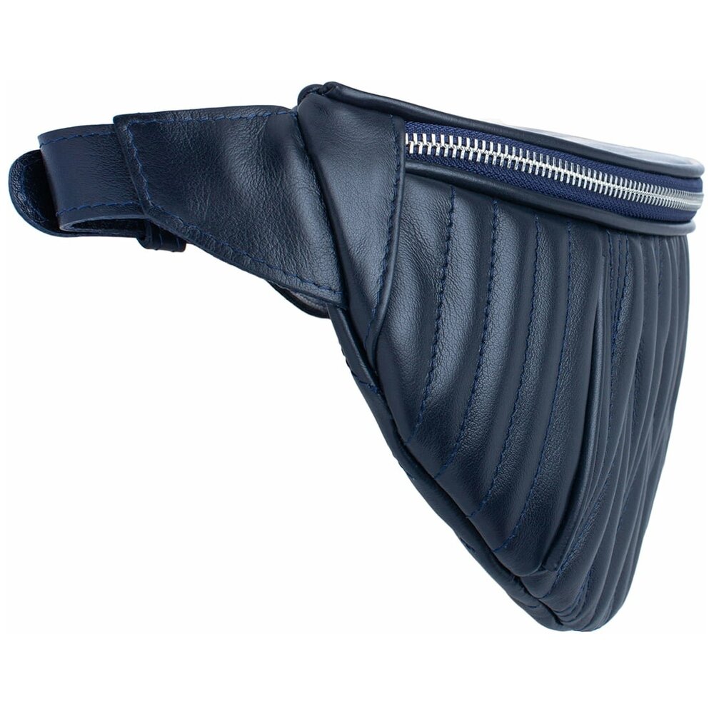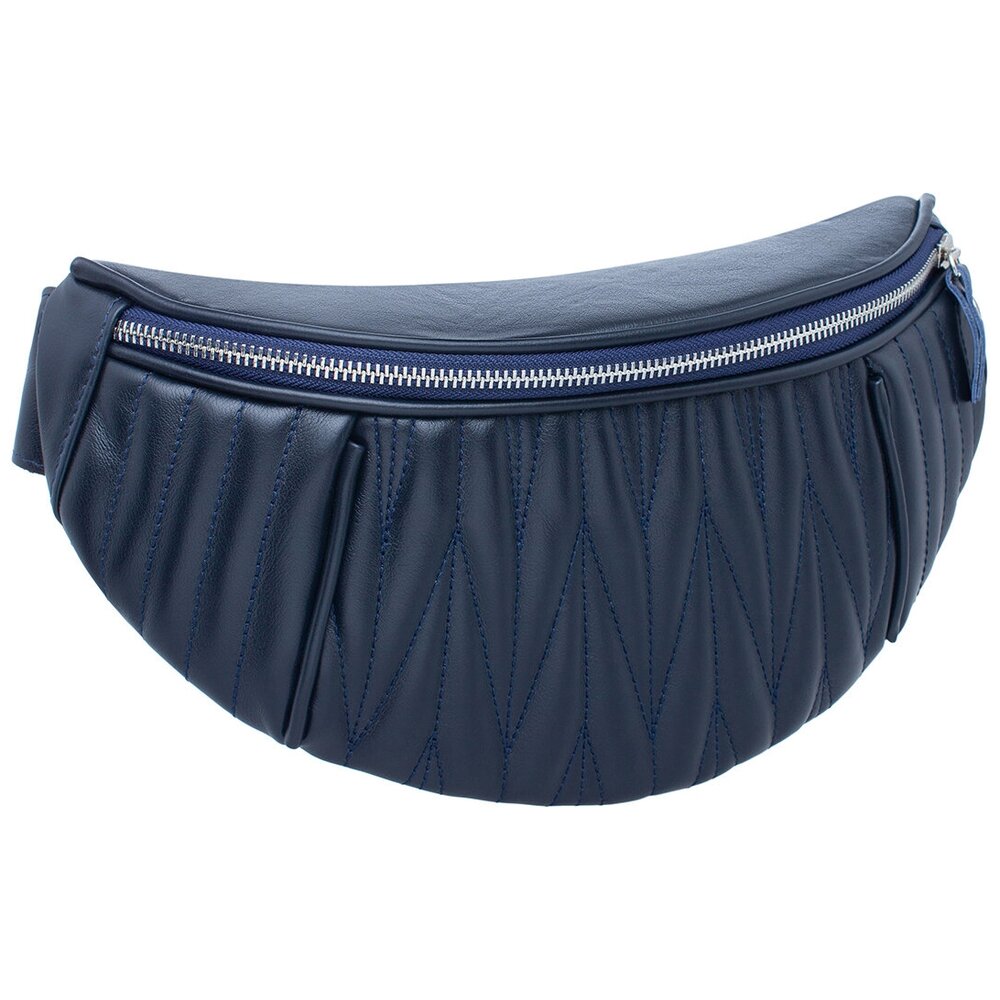 Поясная сумка Darling Dark Blue с прямой, диагональной и ромбовидной прострочкой выглядит женственнее. Кожаный ремень дополняет корпус из натуральной кожи. Отрегулировав его длину, сумку можно носить не только на поясе, но и через плечо. В небольшом центральном отделении, обшитым водоотталкивающей тканью, прорезной и открытый карман.