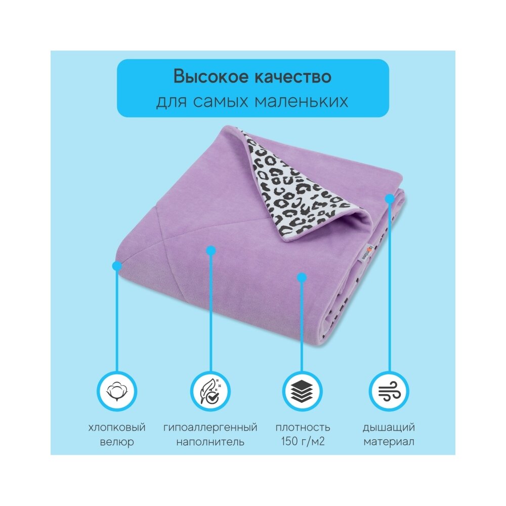 Детский велюровый плед выполнен из мягкого органического хлопка премиум качества, в качества наполнителя используется гипоаллергенный холлофайбер. Им можно укрыть малыша в кроватке, коконе, на прогулке в коляске, или же автокресле. При желании можно использовать как покрывало для детской кроватки или коврик для игр. Оптимальный размер 95x85 см позволит комфортно использовать плед с рождения и до 2 лет. Товар сертифицирован в соответствии с ГОСТ 32119-2013 и безопасен для детей. <br /><br />Преимущества: <br />мягкий и теплый, при этом дышащий - малышу будет уютно комфортно; <br />состав: 100% органический хлопок премиум качества - никакого раздражения на нежной коже малыша; <br />износостойкая ткань - даже после многократных стирок плед не вытянется и не потеряет цвет. <br />отличный подарочный вариант - плед станет отличным подарком на новый год или рождение ребенка. <br /><br />Правила ухода: <br />чтобы исключить возможность усадки детского пледа и потери его свойств, стирка производится при температуре 30°С, используя режим «Деликатная стирка» либо ручным способом; <br />отжим в стиральной машине при 800 оборотах; <br />для стирки применяется порошок и ополаскиватель предназначенный для детского белья; <br />плед для новорожденного необходимо стирать отдельно от взрослого белья и предметов общего пользования; <br />гладить детский плед рекомендуем при температуре не больше 180°С с применением отпаривания. <br /><br />Все велюровые одеяла изготавливаются в профессиональной швейной мастерской небольшими партиями, что позволяет нам осуществлять жесткий контроль качества. В наших изделиях вы НЕ найдете торчащих ниток, неровных строчек, некачественных швов. Мы дорожим своей репутацией и искренне хотим, чтобы наши изделия радовали вас.
