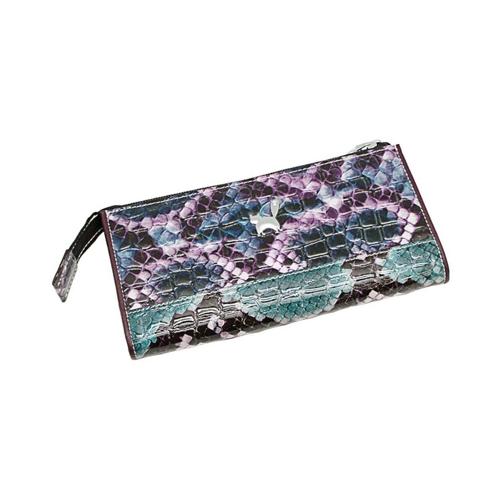 Женский кошелек из натуральной лакированной кожи под змею от Sergio Valentini. Закрывается на молнию. Внутри - два отделения и два кармана для купюр, 6 кармашков для пластиковых карт. Снаружи, на оборотной стороне - карман на молнии.