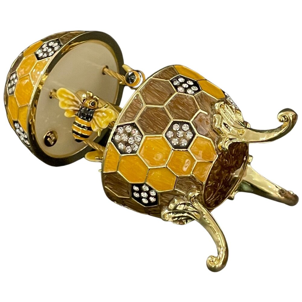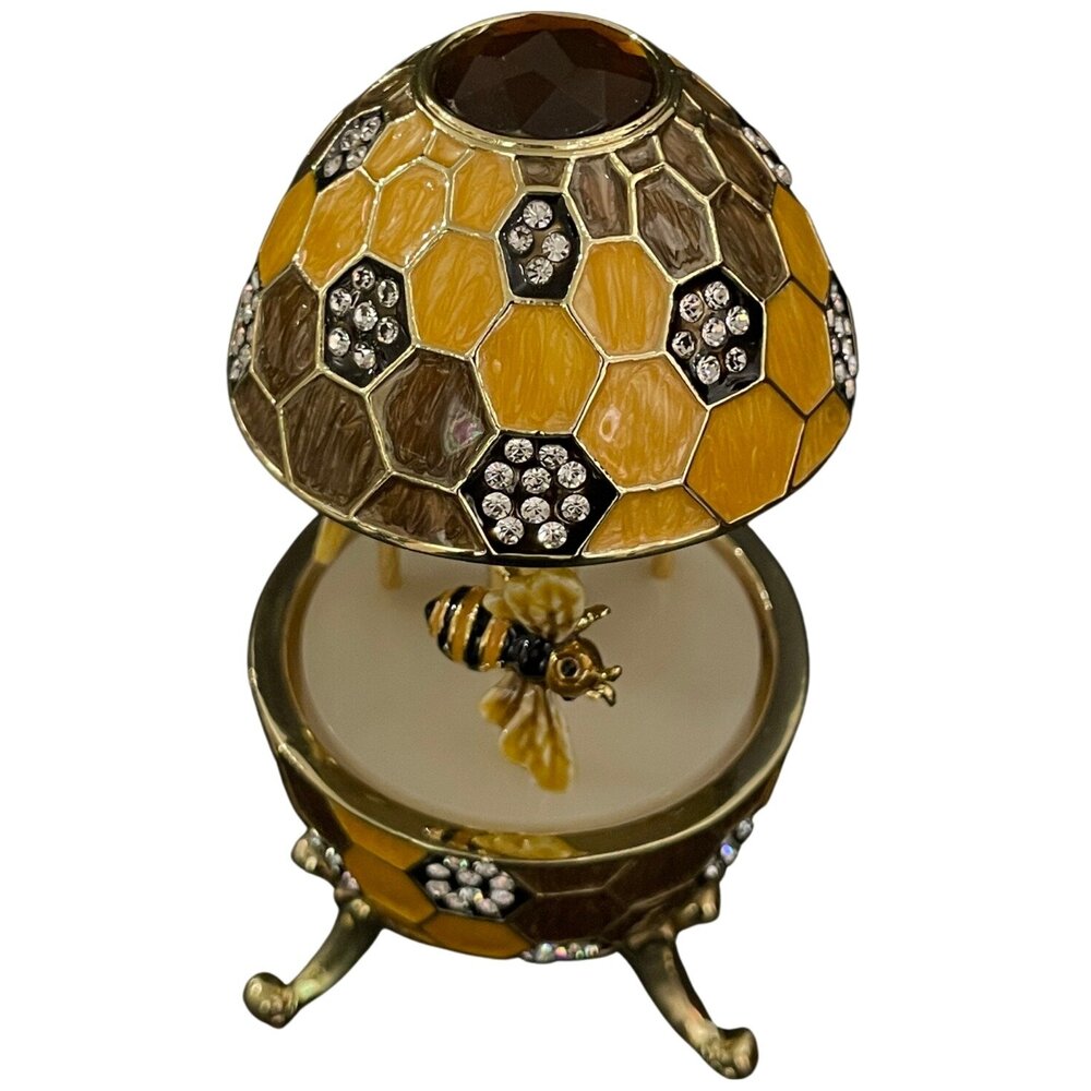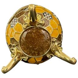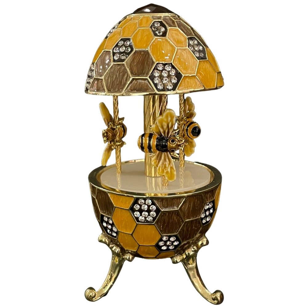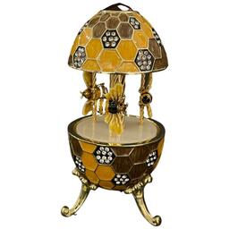 Декоративная интерьерная заводная музыкальная карусель с пчелами в стиле Фаберже (Faberge Egg) сувенирная коллекционная фигурка, подарки, статуэтка, интерьер, декор, пчела, пчелы, соты, винтаж. Ручная работа, пьютер, эмаль, позолота, Австрийские кристаллы. Design by Keren Kopal, Israel