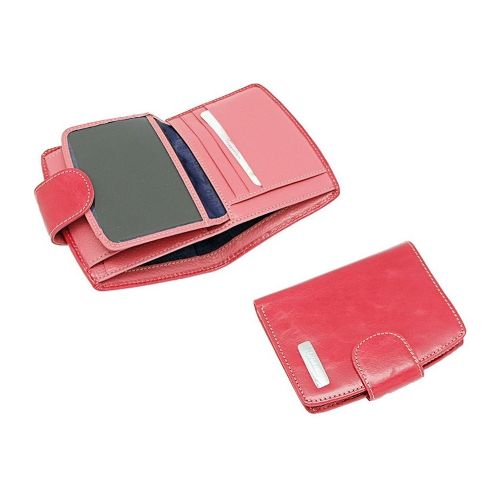 Женский кошелек в два сложения из натуральной гладкой кожи от Sergio Valentini. Закрывается на хлястик с кнопкой. Внутри - отделение для монет на кнопке, два отделения для купюр, шесть кармашков для пластиковых карт, три боковых кармана, центральный клапан с прозрачным окошком.