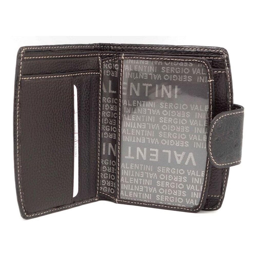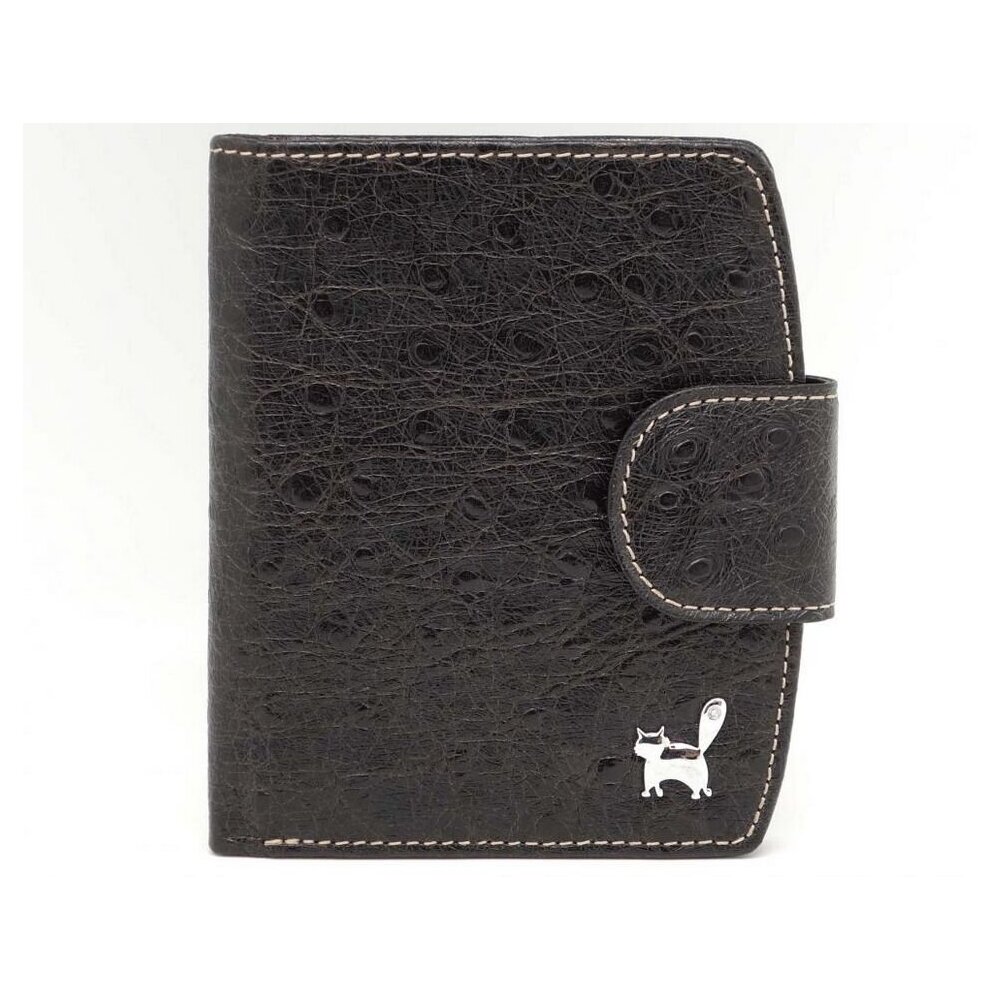 Женский кошелек в два сложения из натуральной кожи под страуса от Sergio Valentini. Закрывается на хлястик с кнопкой. Внутри - отделение для монет на кнопке, два отделения для купюр, шесть кармашков для пластиковых карт, три боковых кармана, центральный клапан с прозрачным окошком.