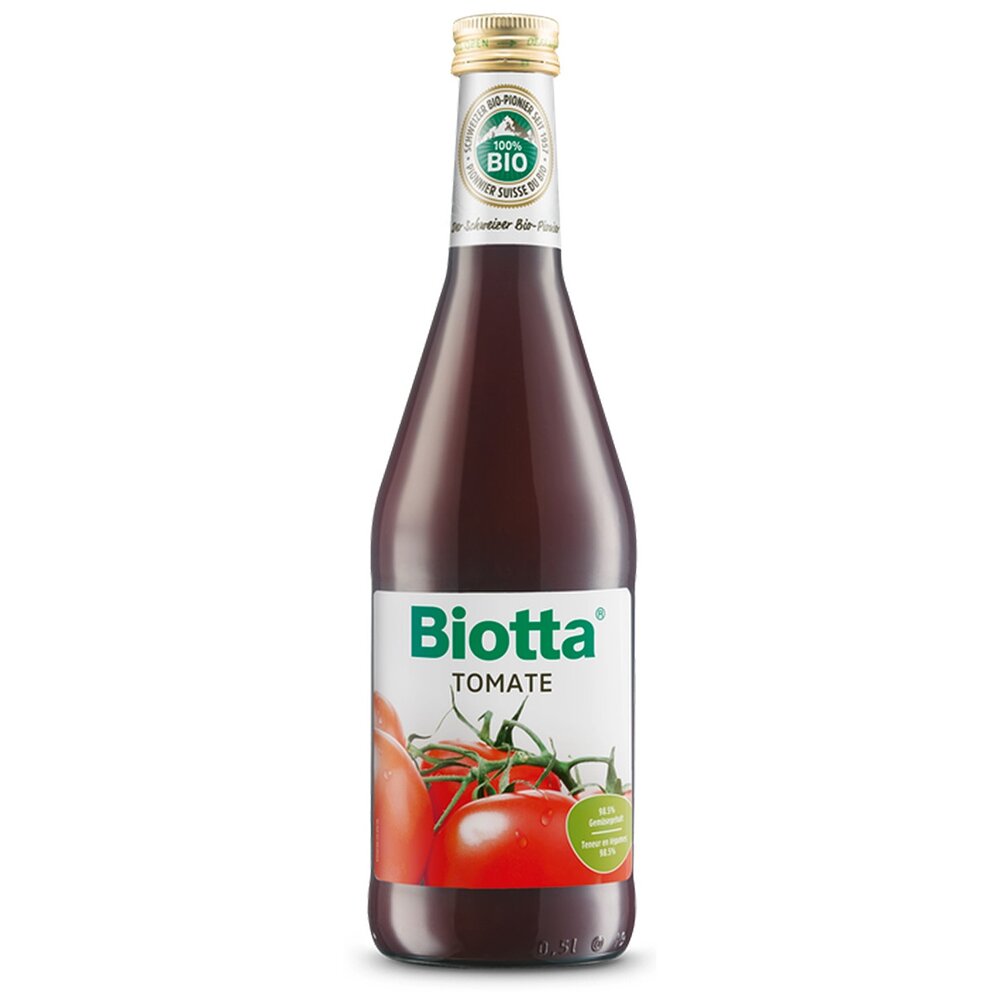 Сок Biotta Tomate, BIO томатный с добавлением лимонного и с морской солью — отличный и, самое главное, вкусный помощник вашему организму. Томатный сок содержит множество витаминов и микроэлементов, такие как А, С, Р, Н, В, РР, фосфор, железо, калий, кальций, магний, хром, кобальт, цинк. Пектин и рутин способствуют снижению холестерина в крови, а также укрепляют стенки сосудов, что уменьшает вероятность возникновения тромбофлебита, варикоза, глаукомы. Ликопен, содержащийся в томатном соке, оказывает антиоксидантное действие, благодаря чему усиливается способность организма противостоять размножению раковых клеток. Доказано, что добавление в рацион онкологических больных томатного сока улучшает их состояние, и даже способствует преобразованию злокачественной опухоли в доброкачественную.<br />Состав: 100% органический томатный сок, органический лимонный сок, морская соль.<br />Из Био-сырья. Био-сертификация: CH-BIO-006<p>Почему «Biotta»?<br />Компания является заслуженным лидером рынка, так как с момента основания сделала ставку на био-производство. Компания «Biotta» собирает урожай овощей и фруктов выращенный на экологически чистых и самых плодородных регионах планеты.<br />Соки «Biotta» — 100% натуральный продукт из Швейцарии, страны с самым бережным отношением к экологии окружающей среды и мораторием на использование ГМО.<br />Качество соков «Biotta» соответствует высочайшим требованиям в области био-продуктов и засвидетельствовано международными био-сертификатами.</p><p>Пищевая ценность на 100 мл:<br />Энергетическая ценность: 70 кДж (15 ккал)<br />Жиры 0 г<br />из которых насыщенные 0 г<br />Углеводы 3,5 г<br />из которых сахара * 2,5 г<br />Белки 0 г<br />Соль 0,5 г<br />Хлебная единица 0,3<br />*содержит природные сахара</p>
