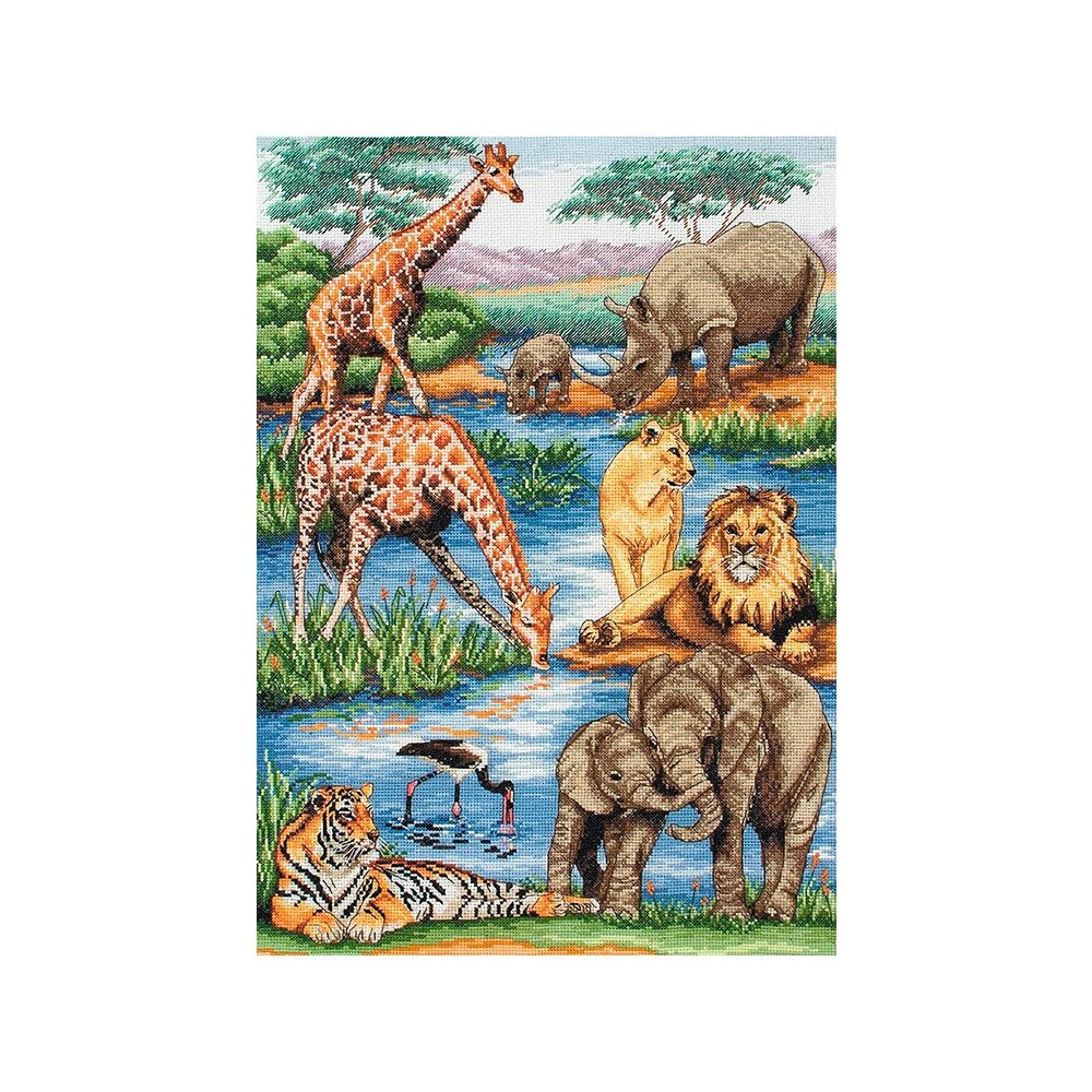 Набор для вышивания Maia "African Wildlife" /Африканская дикая природа/ 42*29см (состав: канва Aida 16, цветная схема, нитки Anchor, игла, инструкция), счетный крест
