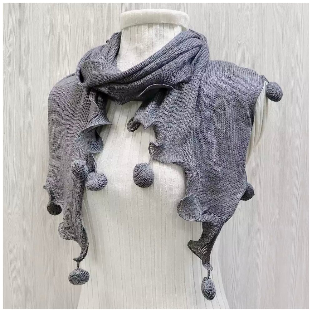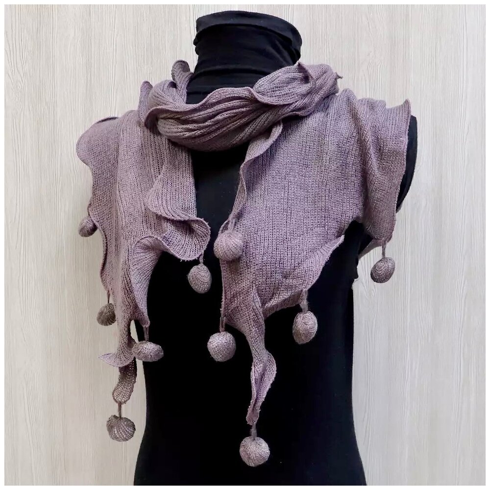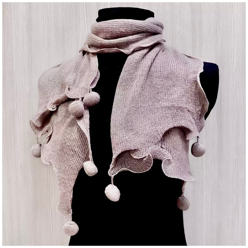 Теплый, мягкий шарф, вязаный шарф с помпонами.