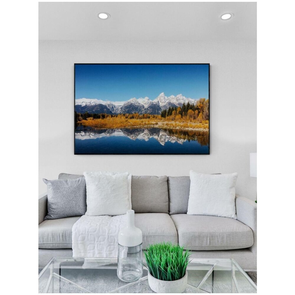 Постер с видом на величественные пики хребта Тетона, отражающиеся на водной глади.. Этот постер напечатан высококачественными чернилами на сатиновой плотной постерной бумаге. Он будет отлично смотреться как в рамке, так и без. Он отлично впишется в любой интерьер и станет украшением любого пространства. Все плакаты мы аккуратно сворачиваем вручную и отправляем в плотных крафтовых тубусах, так что ваш заказ гарантированно доедет до вас в целости и сохранности. Наши особенности: Высококачественные чернила, которые сохранят свои качества много лет, плотная постерная бумага (220г/м2), яркие насыщенные цвета, надежная доставочная упаковка и ручная сборка. Обратите внимание, что фотографии постеров в интерьерах приведены для примера. Они не отражают реальных пропорций и используются, чтобы показать, как постер может смотреться на стене. Мы печатаем все плакаты в трех размерах: S - 40x50 см, M - 50x70 см и L - 60x90 см. В связи с тем, что на разных операционных системах и мониторах разные настройки цвета - финальный принт может немного отличаться от того, что вы видите на экране. Сделано в России, в Москве