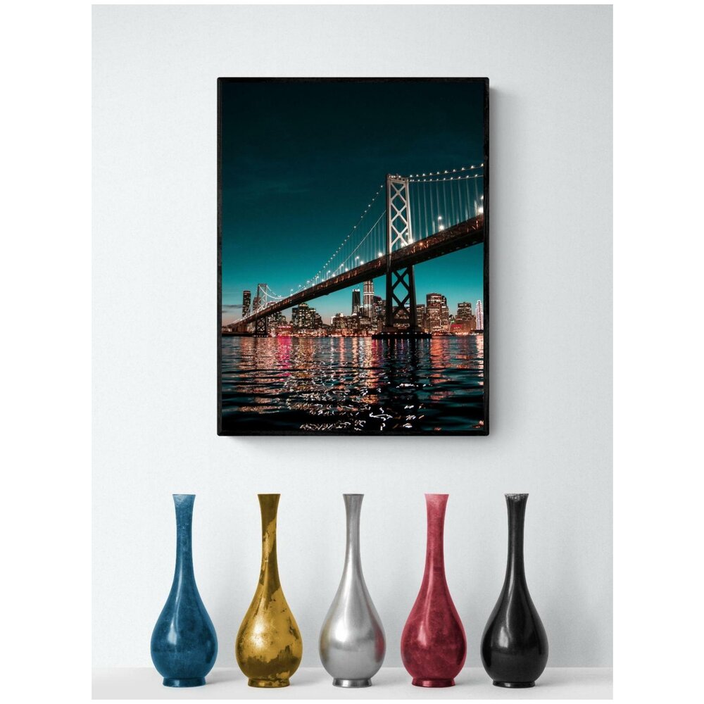 Стильное изображение моста, утопающего в ночных огнях города. Большое подвесное сооружение захватывает дух.. Этот постер напечатан высококачественными чернилами на сатиновой плотной постерной бумаге. Он будет отлично смотреться как в рамке, так и без. Он отлично впишется в любой интерьер и станет украшением любого пространства. Все плакаты мы аккуратно сворачиваем вручную и отправляем в плотных крафтовых тубусах, так что ваш заказ гарантированно доедет до вас в целости и сохранности. Наши особенности: Высококачественные чернила, которые сохранят свои качества много лет, плотная постерная бумага (220г/м2), яркие насыщенные цвета, надежная доставочная упаковка и ручная сборка. Обратите внимание, что фотографии постеров в интерьерах приведены для примера. Они не отражают реальных пропорций и используются, чтобы показать, как постер может смотреться на стене. Мы печатаем все плакаты в трех размерах: S - 40x50 см, M - 50x70 см и L - 60x90 см. В связи с тем, что на разных операционных системах и мониторах разные настройки цвета - финальный принт может немного отличаться от того, что вы видите на экране. Сделано в России, в Москве