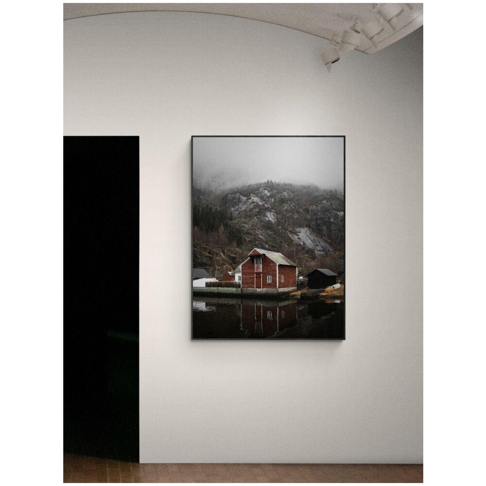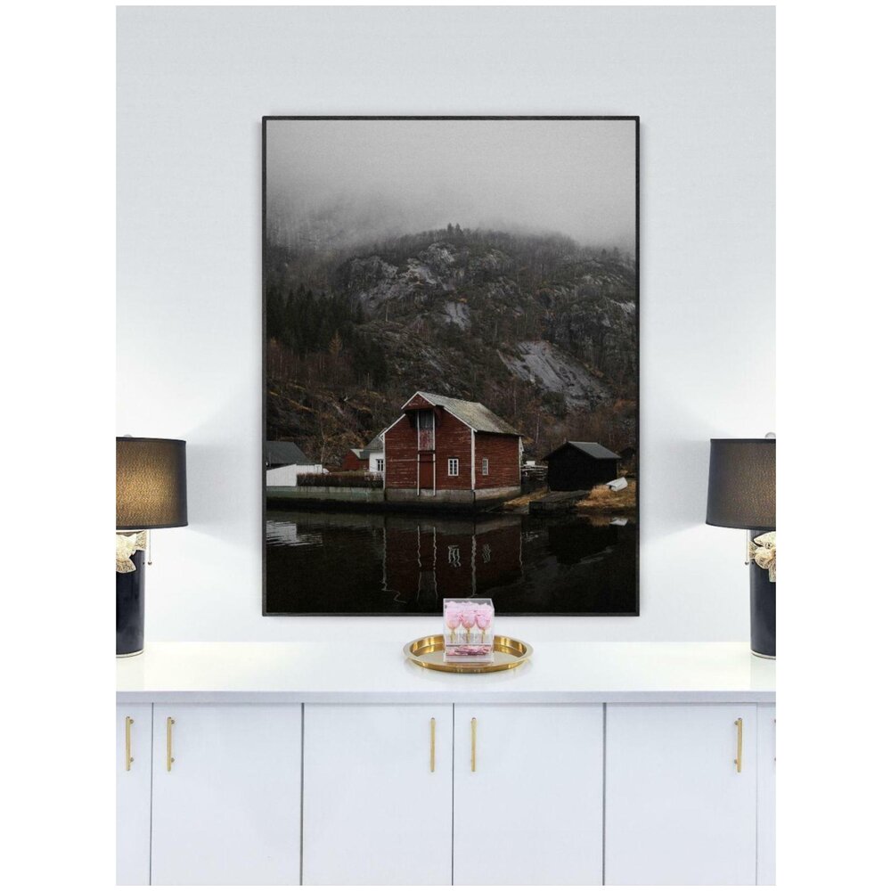 Спокойный пейзаж с домом в Норвегии на фоне туманных гор. Тихая гавань на берегу озера.. Этот постер напечатан высококачественными чернилами на сатиновой плотной постерной бумаге. Он будет отлично смотреться как в рамке, так и без. Он отлично впишется в любой интерьер и станет украшением любого пространства. Все плакаты мы аккуратно сворачиваем вручную и отправляем в плотных крафтовых тубусах, так что ваш заказ гарантированно доедет до вас в целости и сохранности. Наши особенности: Высококачественные чернила, которые сохранят свои качества много лет, плотная постерная бумага (220г/м2), яркие насыщенные цвета, надежная доставочная упаковка и ручная сборка. Обратите внимание, что фотографии постеров в интерьерах приведены для примера. Они не отражают реальных пропорций и используются, чтобы показать, как постер может смотреться на стене. Мы печатаем все плакаты в трех размерах: S - 40x50 см, M - 50x70 см и L - 60x90 см. В связи с тем, что на разных операционных системах и мониторах разные настройки цвета - финальный принт может немного отличаться от того, что вы видите на экране. Сделано в России, в Москве
