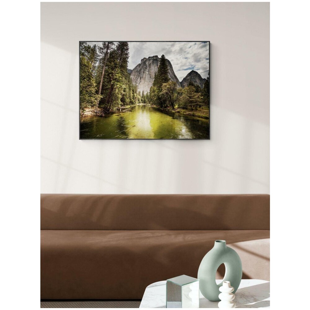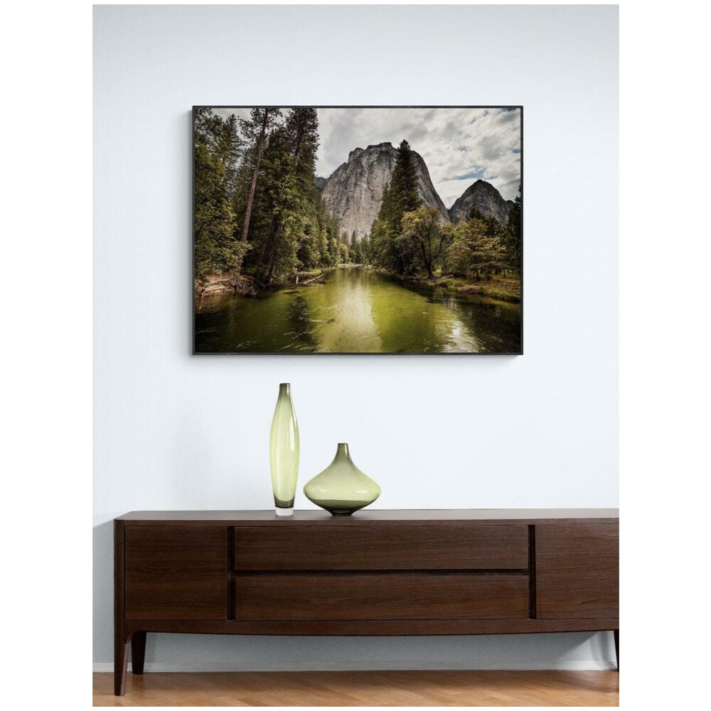 Плакат с фотографией пейзажа в национальном парке Йосемити. Река у подножия горы, окруженная лесом.. Этот постер напечатан высококачественными чернилами на сатиновой плотной постерной бумаге. Он будет отлично смотреться как в рамке, так и без. Он отлично впишется в любой интерьер и станет украшением любого пространства. Все плакаты мы аккуратно сворачиваем вручную и отправляем в плотных крафтовых тубусах, так что ваш заказ гарантированно доедет до вас в целости и сохранности. Наши особенности: Высококачественные чернила, которые сохранят свои качества много лет, плотная постерная бумага (220г/м2), яркие насыщенные цвета, надежная доставочная упаковка и ручная сборка. Обратите внимание, что фотографии постеров в интерьерах приведены для примера. Они не отражают реальных пропорций и используются, чтобы показать, как постер может смотреться на стене. Мы печатаем все плакаты в трех размерах: S - 40x50 см, M - 50x70 см и L - 60x90 см. В связи с тем, что на разных операционных системах и мониторах разные настройки цвета - финальный принт может немного отличаться от того, что вы видите на экране. Сделано в России, в Москве