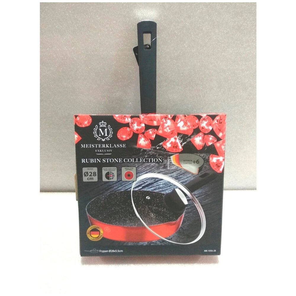 Сковорода MEISTERKLASSE 26см красная со стеклянной крышкой, внутреннее гранитное покрытие, MK-1056-26