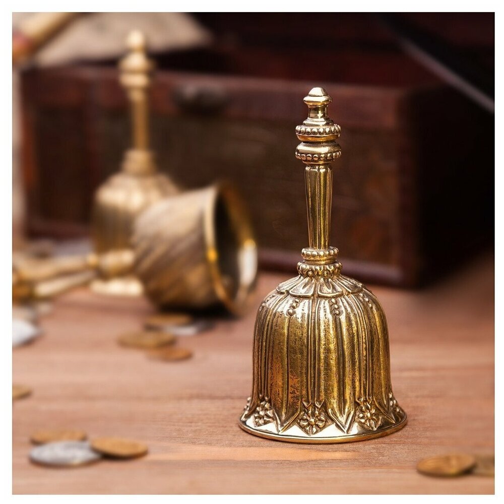 Коллекционный Колокольчик. Размеры: Высота 110 мм.; Диаметр 55 мм.; Вес 195 гр. Выполнен из бронзы, декоративное покрытие - ювелирная патина. Отличный предмет для Вашего интерьера или подарок для Ваших друзей, родных к праздникам.