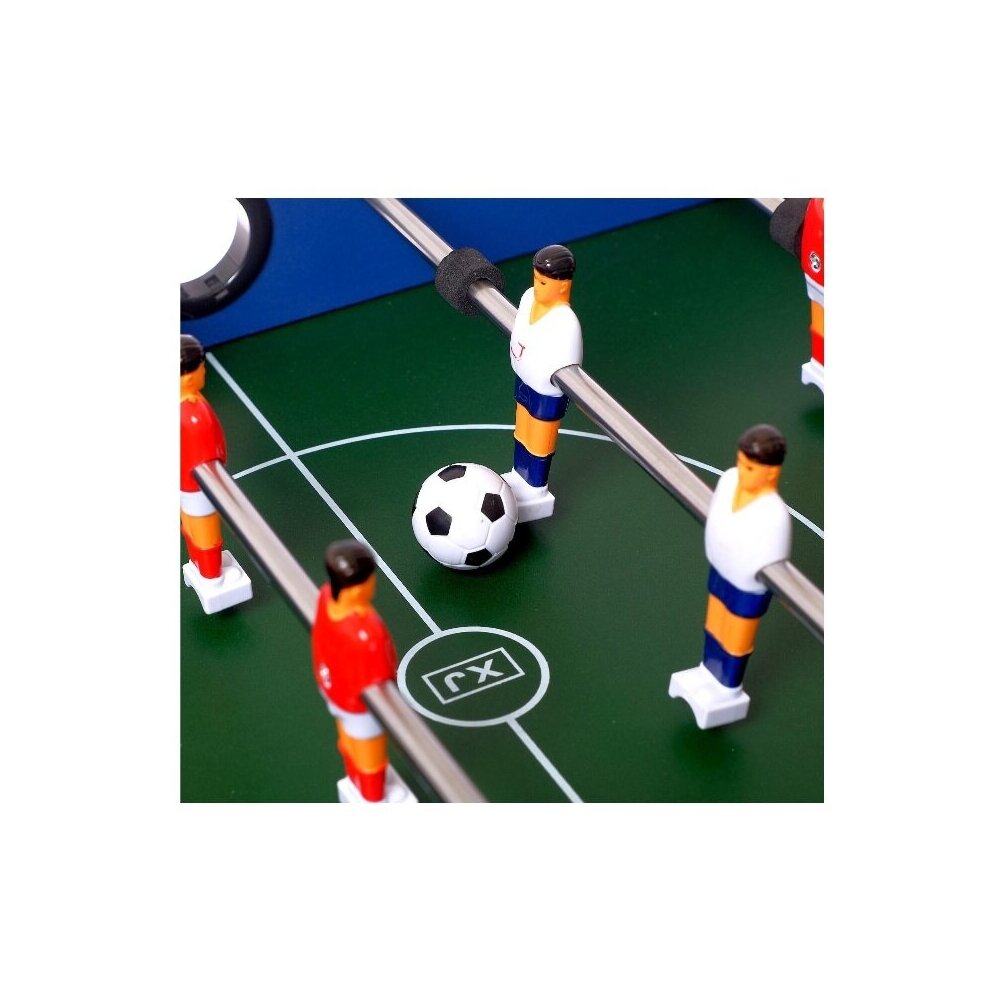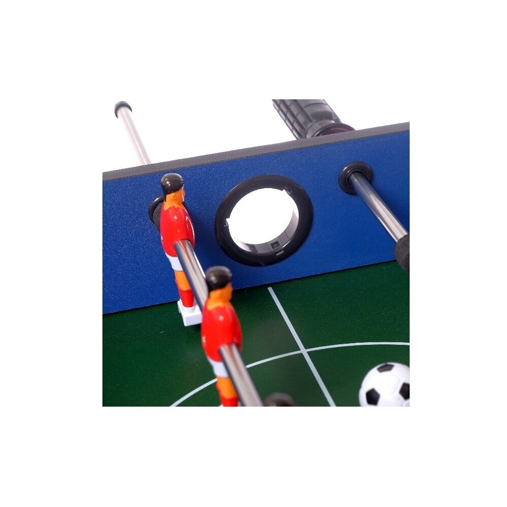 Настольный футбол это уменьшенная копия самого популярного в мире спортивного противостояния двух команд. Необходимо моментально принимать решения о том, какого из футболистов задействовать в атаке или защите, и каким рычагом им управлять. Устройте семейное соревнование или дружеский тур! Характеристика: Состоит из игрового поля, обрамлённого барьером. На поле располагаются две футбольные команды по 9 игроков в каждой. Стол оснащен двумя механическими счётчиками очков. Эргономичные пластиковые ручки обеспечивают удобный захват. Вырабатывает быстроту реакции, мягкость и точность движений. Размеры игры позволяют играть в небольших помещениях 69 см х 37 см х 24 см Поставляется в разобранном виде, в комплекте отвертка.