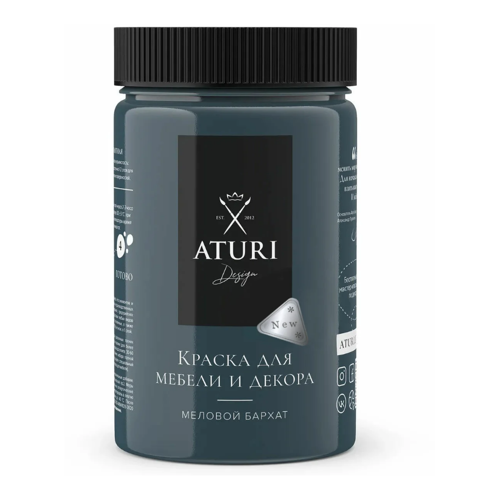 Краска латексная Aturi Design для мебели и декора "Меловой Бархат" матовая морской царь 0.4 кг