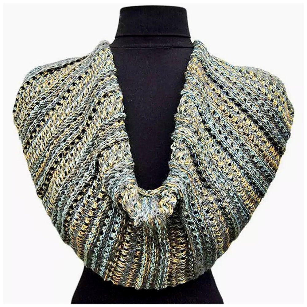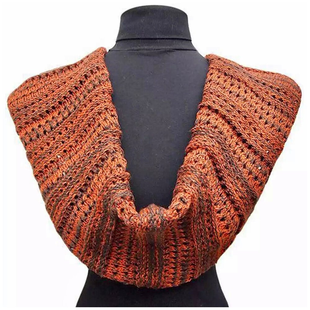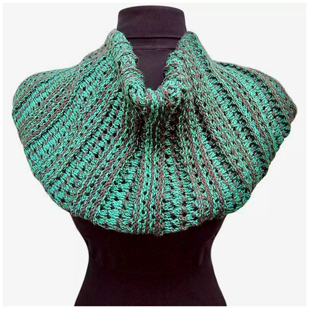 Красивый, теплый, вязаный шарф снуд, который можно носить и на шее, и на голове.