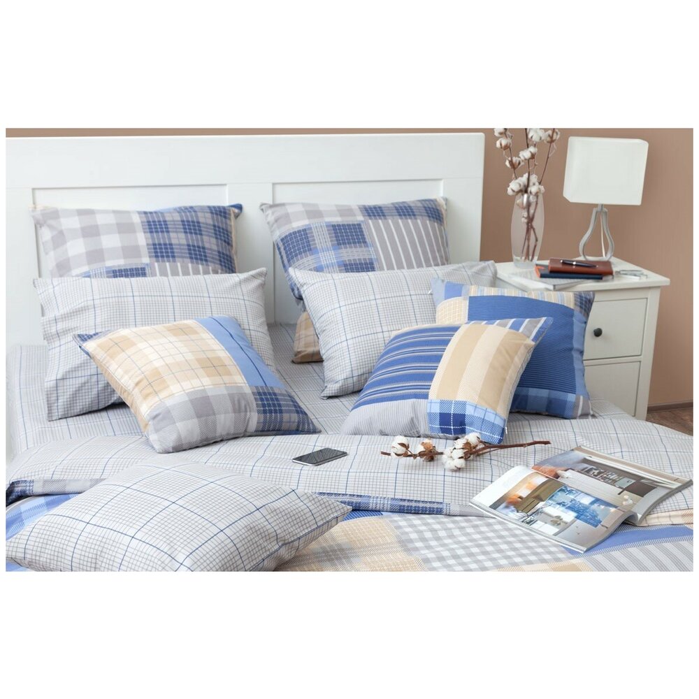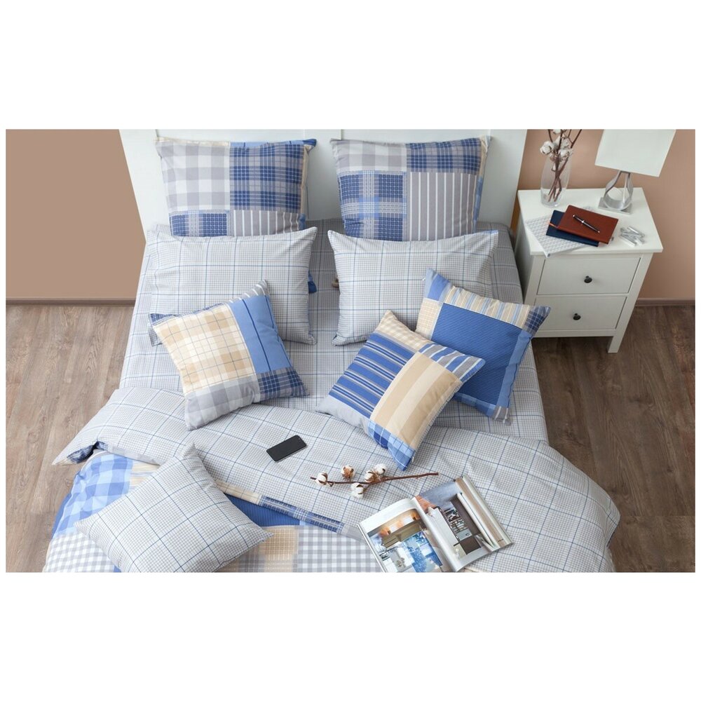 Постельное белье 1,5 спальное Манчестер синий Хлопковый край