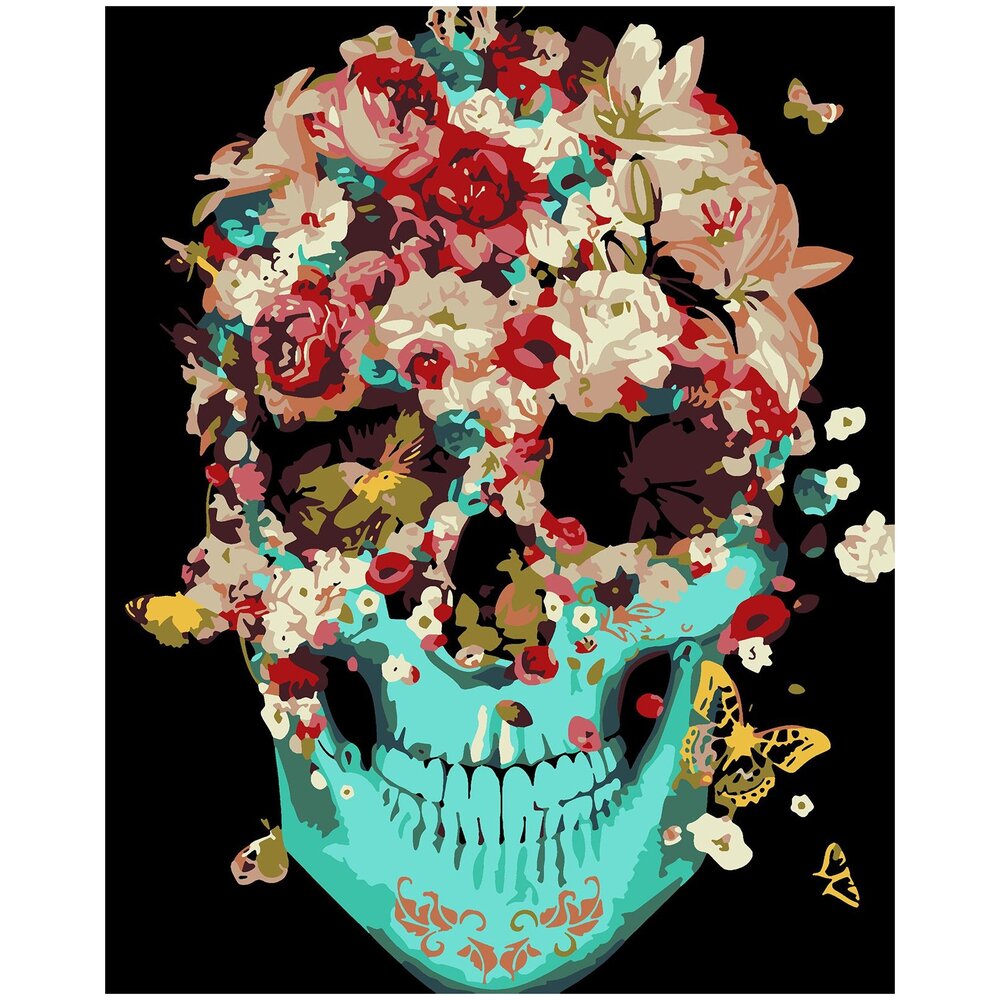Картина по номерам Череп и цветы 3, 90 х 100 см