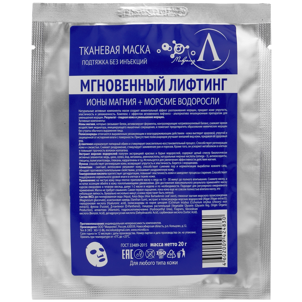 Маска для лица Микролиз "Мгновенный лифтинг", тканевая, 1 шт