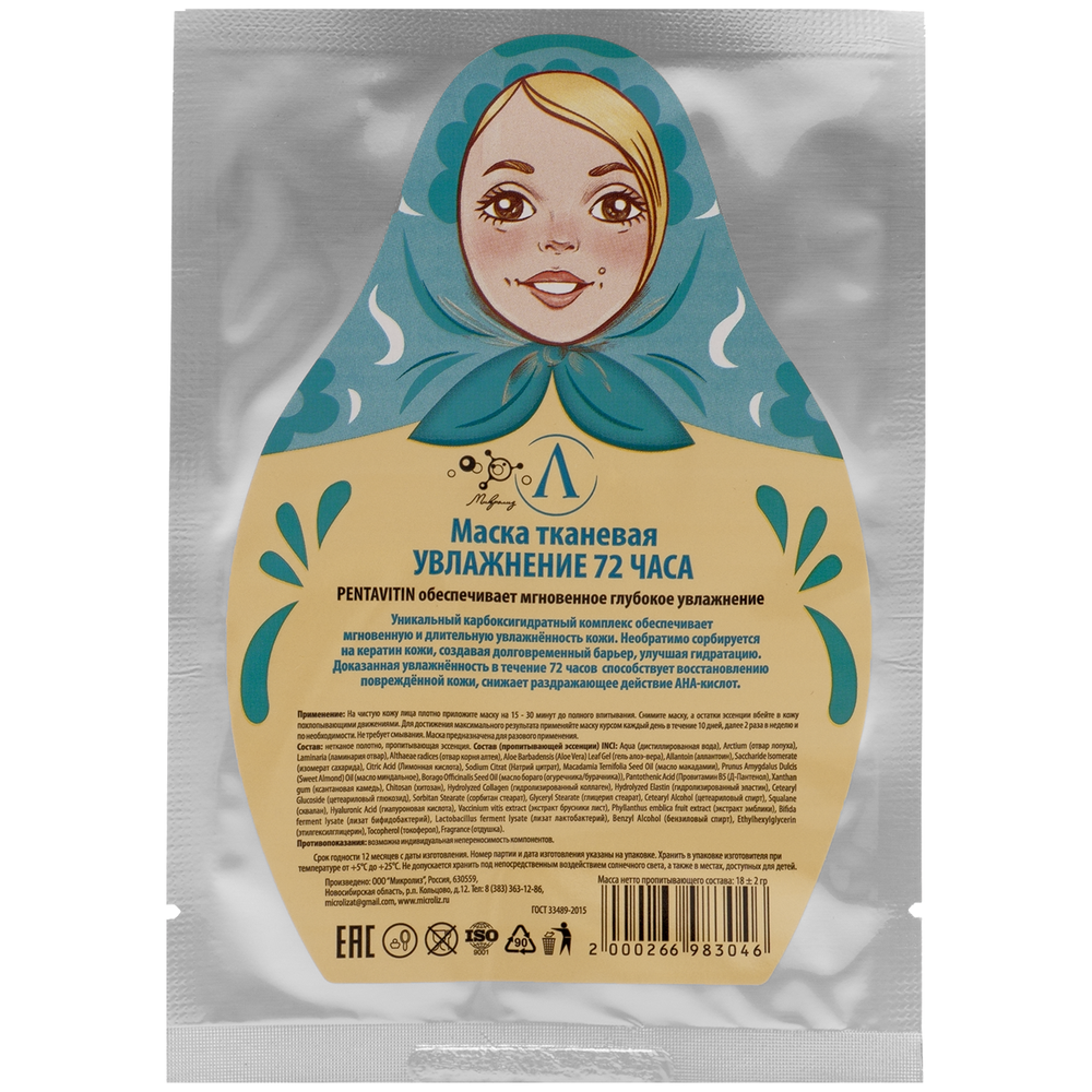 Маска для лица Микролиз "Увлажнение 72 часа", тканевая, 1 шт