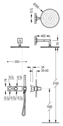 - Дополнительная информация диаметр верхнего душа: 300 мм