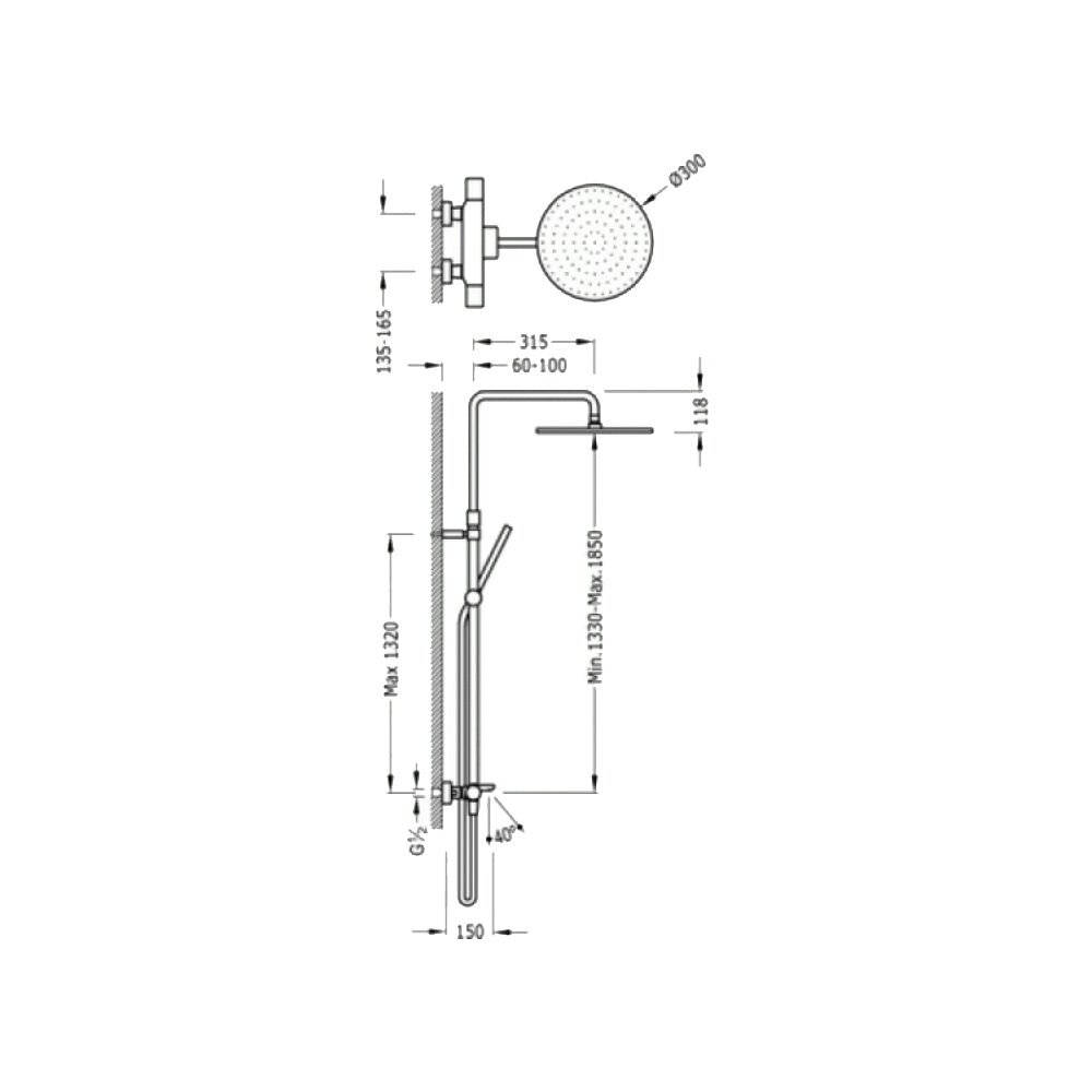 - Дополнительная информация высота стойки для душа: 1850 мм; диаметр верхнего душа: 300 мм