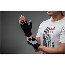 Наши разработчики товаров для силовых тренировок создали эти перчатки для улучшенного хвата и удобства во время выполнения упражнений. Эти перчатки обеспечивают максимум комфорта во время силовых тренировок и улучшает захват при подъеме тяжелых весов. Амортизация: Толстый слой мягкого наполнителя обеспечивает комфорт на ладони Предотвращение скольжения: Материал на ладонях улучшает захват снарядов. Прочность: Прочные перчатки с усиленными швами Гарантия 2 года. .Фиксация: Застежка на липучке для точной фиксации. иДышащие свойства: Сетка на тыльной стороне ладони улучшает вентилируемость. тЛегкость снятия / надевания: Специальные язычки для легкости снятия. тТыльная сторона ладони: 10% Эластан, 90% Полиэстер. тЛадонь: 50% Полиуретан, 50% Полиамид. аМанжета: 100% Вспененный стирол-бутадиеновый каучук.