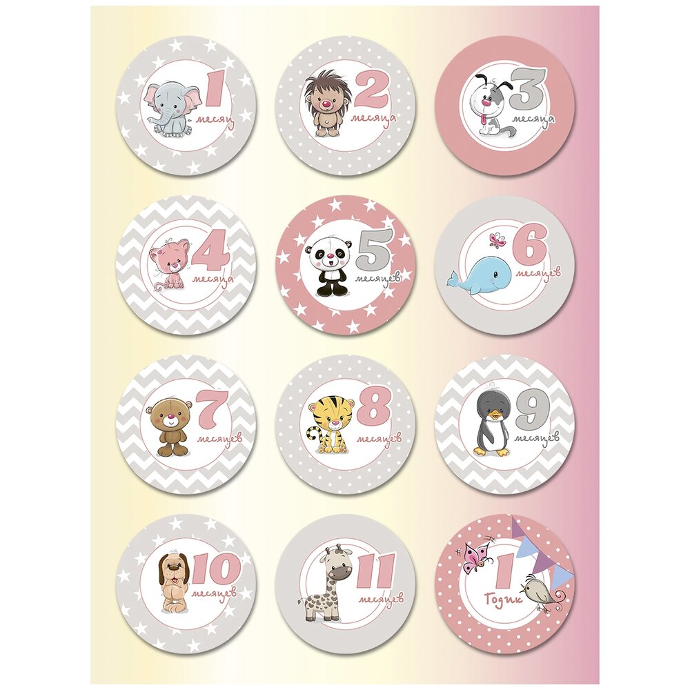 Набор наклеек со зверушками и возрастом ребенка от 1 до 12 месяцев.