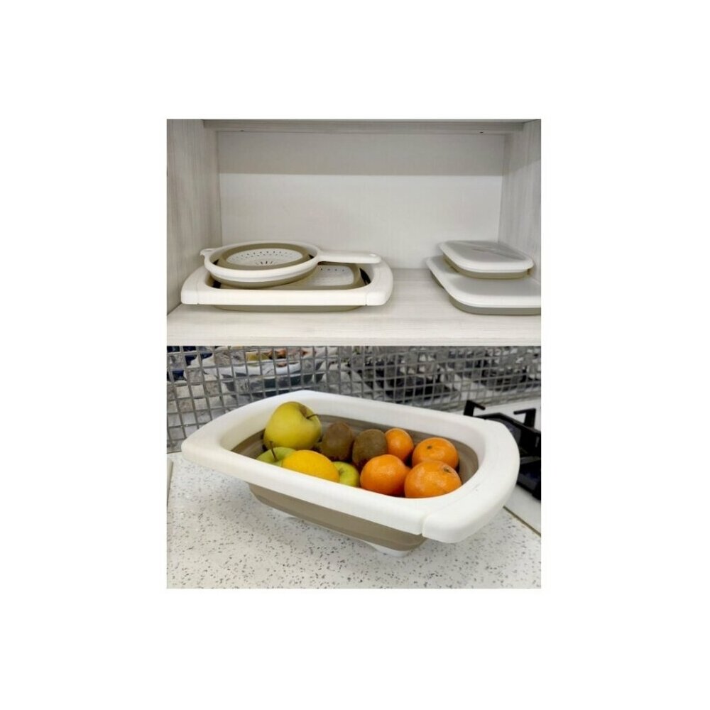 Дуршлаг складной с телескопическими ручками для любой ширины раковины Удобно использовать и удобно хранить. В сложенном виде: 39х27х4 см В разложенном виде: 60х26,5х12 см Материал: пластик/силикон Цвет: серый/белый __________________________ -Для мойки овощей -Для сушки посуды, овощей, фруктов -Компактный в хранении -Можно мыть в посудомоечной машине -Термостойкие материалы. Подходит для кипятка и замораживания (льда). От -20 до +80 градусов