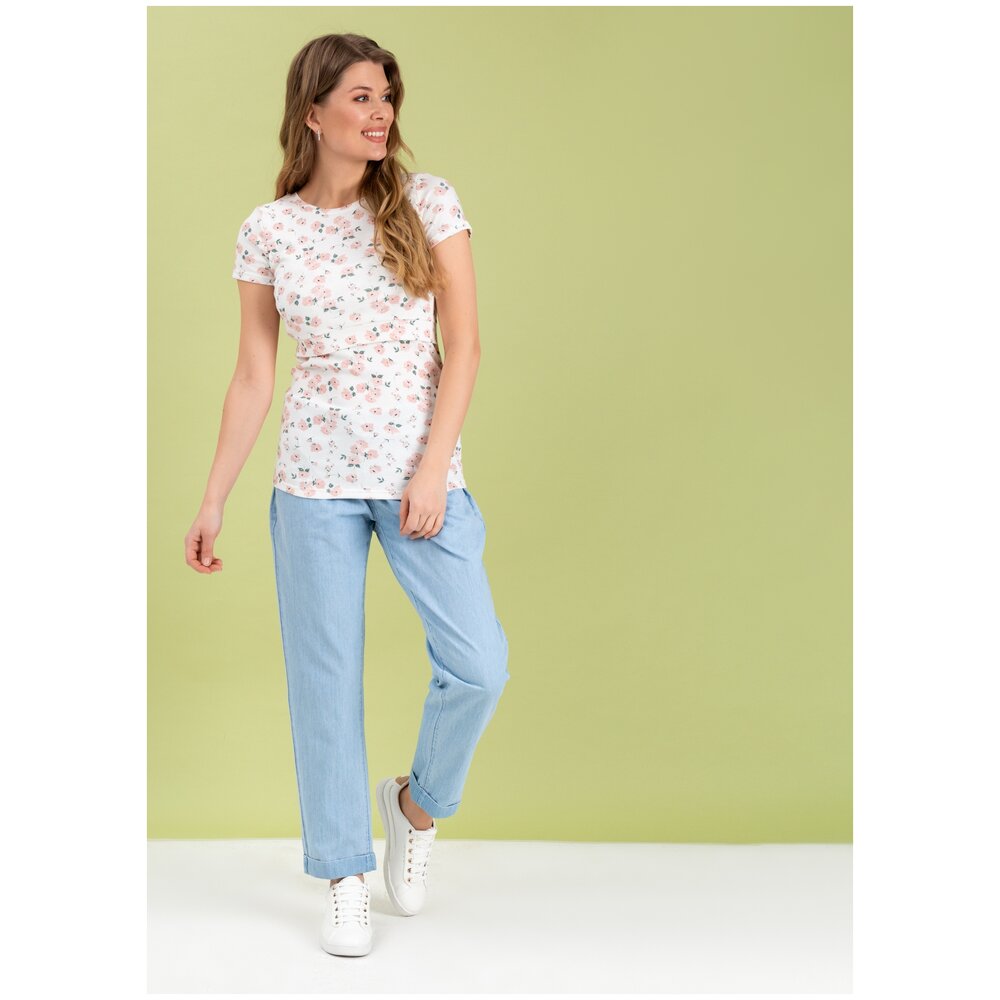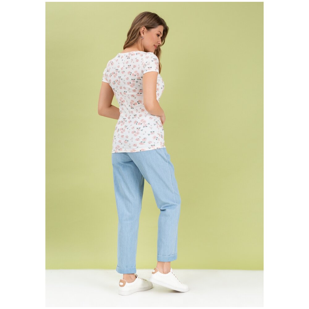 Футболка I love mum Веста белая/цветы для беременных и кормящих (46)