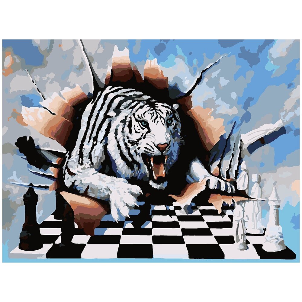 Картина по номерам Белый тигр и шахматы, 70 х 90 см