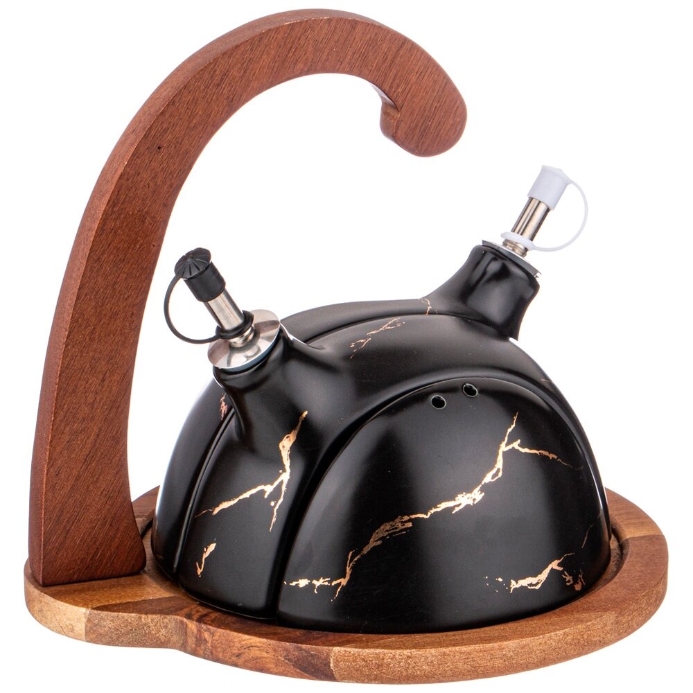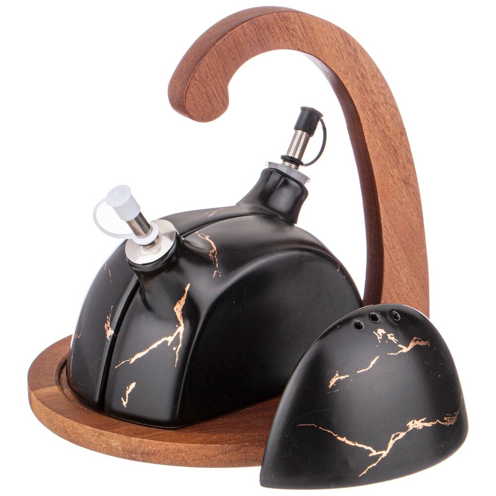 Набор для специй 4 пр. на деревянной подставке с ручкой золотой мрамор цвет: black Lefard (412-182)