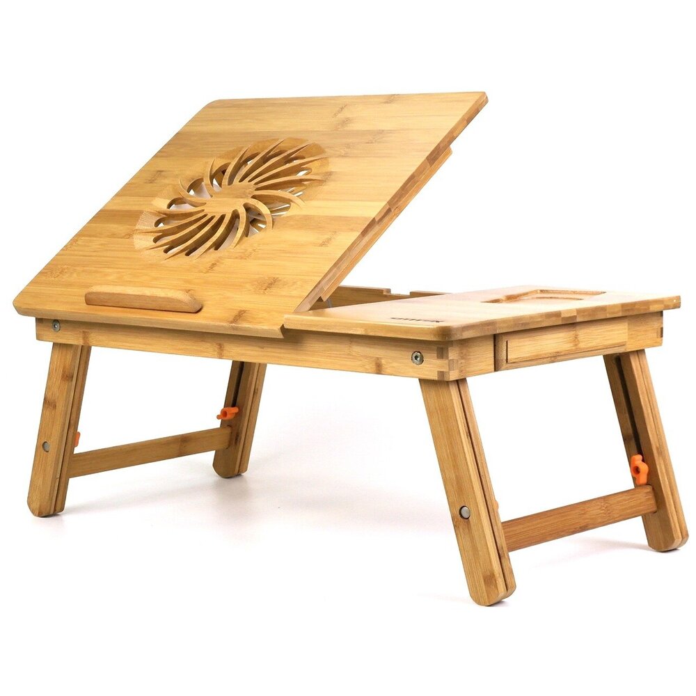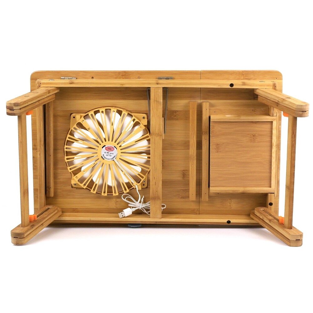 Cтолик для ноутбука "SITITEK Bamboo 1" из бамбука: красивый, легкий и прочный, из экологически чистого материала, оснащен отдельной подставкой для мышки, выдвижным ящичком для мелочей и большой столешницей, которую можно закрепить под разным углом. Имеет регулирующиеся по высоте ножки и активную систему охлаждения ноутбука (встроенный вентилятор).
