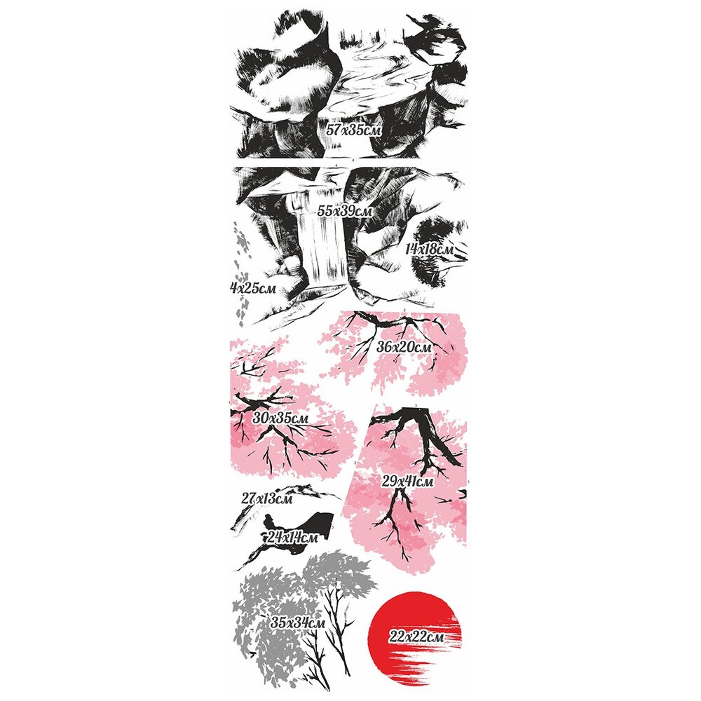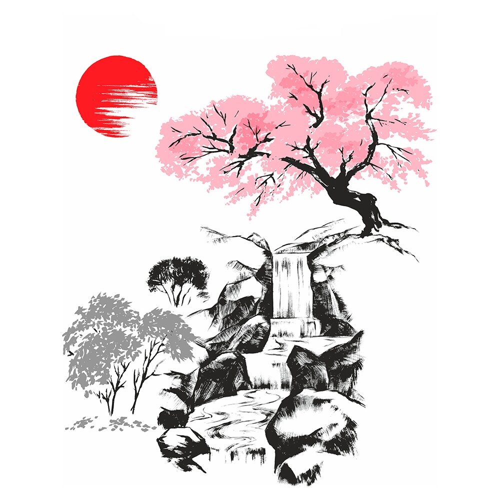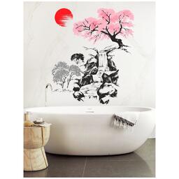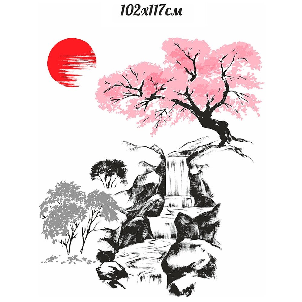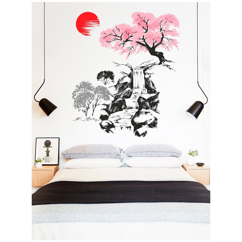 Наклейка для интерьера Woozzee Вишня возле водопада суми-э NDS-828-0706